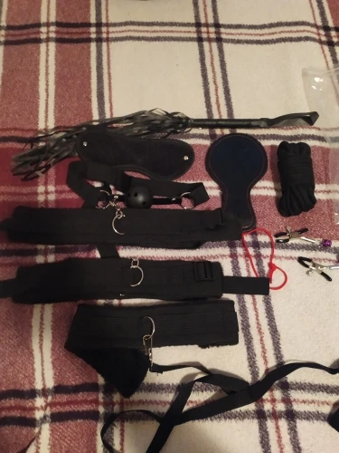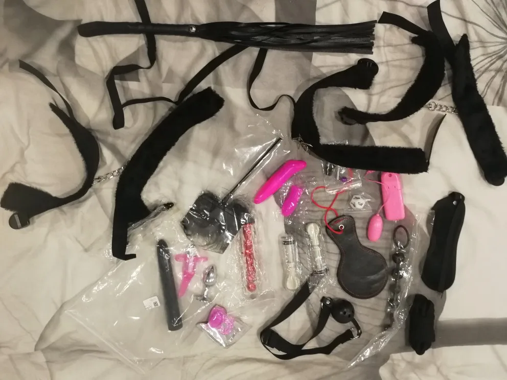 Максимально ахрененный набор ! Всем советую . В Украину - Киев , шло 3 недели . В набор входит :трусы (открытые), плётка плотная (для шлепков) , плётка с ниточками , кляп, вибратор с силиконов насадкой , вибратор на пульте (вагинальный шарик) , зажимы для сосков , вибратор для клитора (хвостик с шипами , силиконовый ) , отсоски для сосков , канат для связывания , кольцо на головку , повязка на глаза , анальные шарики , 3 анальные пробки силиконовые (разных форм) , железная анальная пробка со стразом , обычный прямой вибратор (+\- 17 см), насадка которую модно надеть как на пальцы , так и на член (силиконовая , вибрирующая,очень легко растягивается и не давит ) , насадка на палец с пупырышками , палочка с перьями , 2 пары наручников (на ноги и на руки ) и к ним сердцевина для объединения этих наручников , ошейник и поводок . Материал хороший и не рвётся , всё качественно прошито и сделано . РЕКЛМЕНДУЮ !