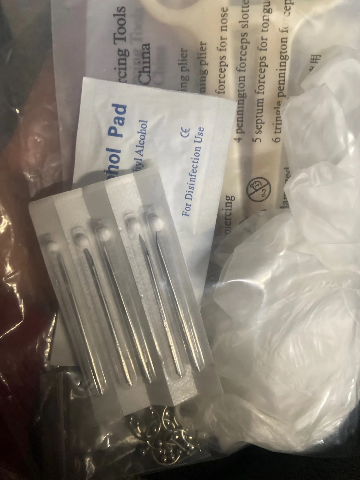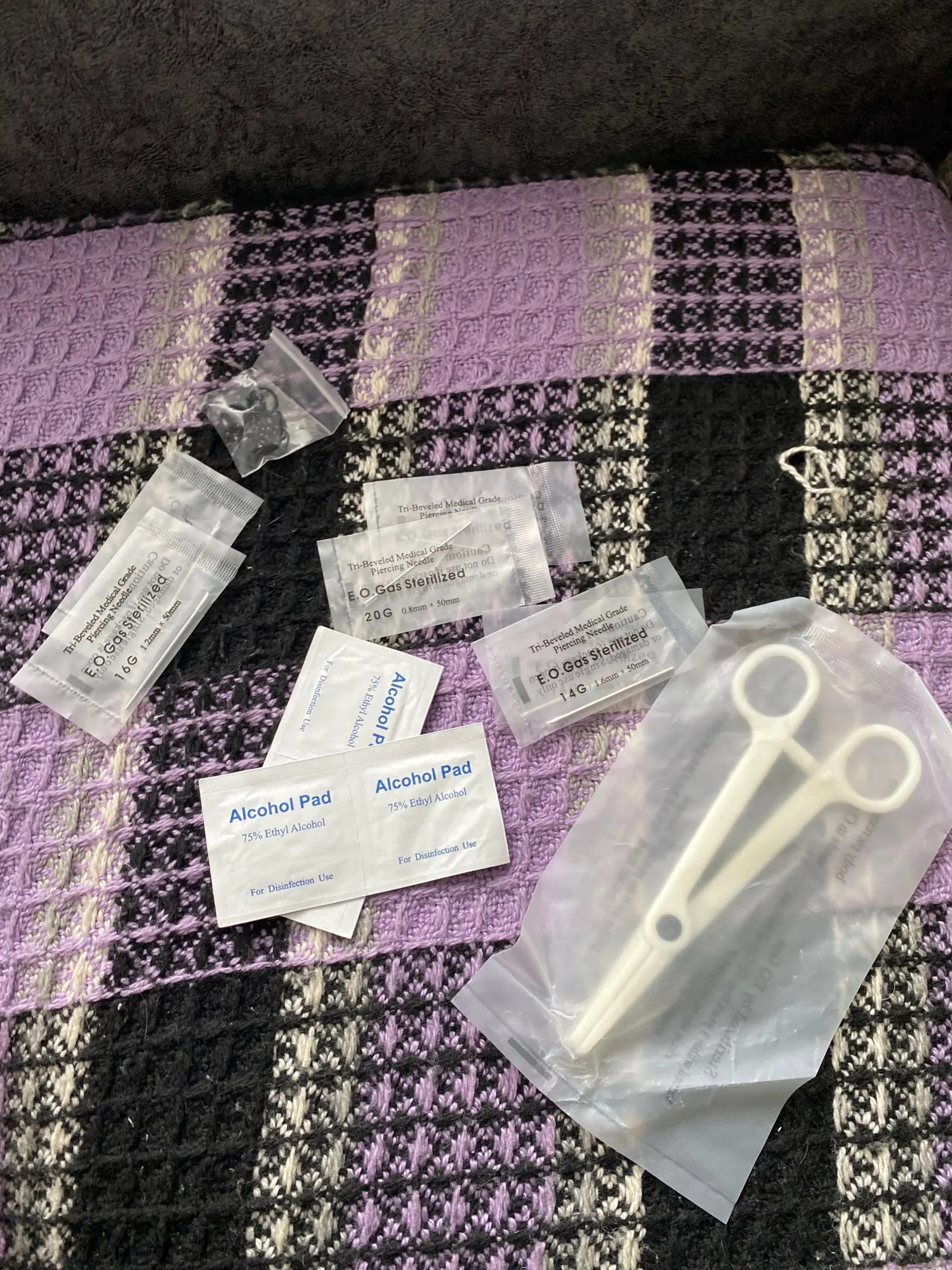 Перчатки без пинцета используются для удержания шариков, с тем, что вам нужно обрабатывать руками, новейшая ранка, чтобы закрыть серьги под риск того, что винт выпадает. Иглы не могут быть использованы без чего-то трудно прижимать к коже и центр пирсинга, винт звезды больше, чем серьги там, где вы должны положить его, С тем, что я должен был использовать клей и оставить его для украшения