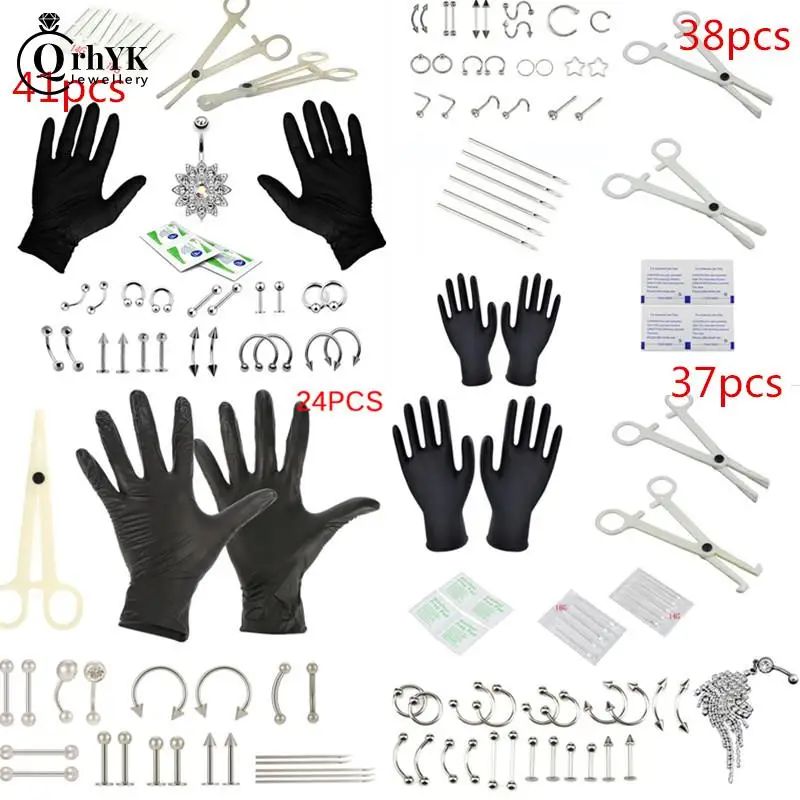 41 шт.компл. инструмент для пирсинга тела иглы живота сосок, бровь губы нос кольцо язычок для пирсинга набор инструментов для создания украшений