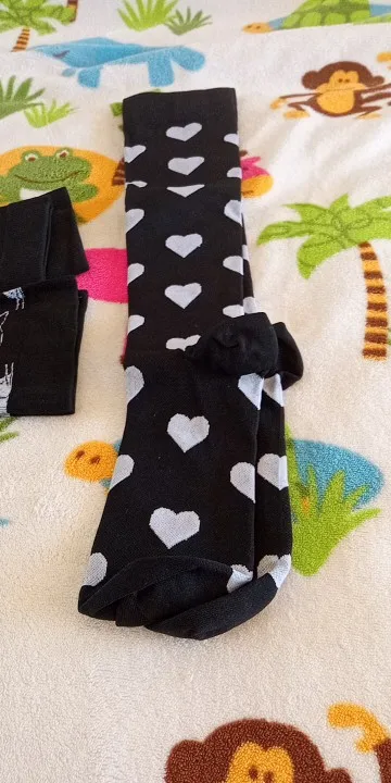 Красивые носки, очень плотные (я ношу обувь европейского размера 41), чувствую давление