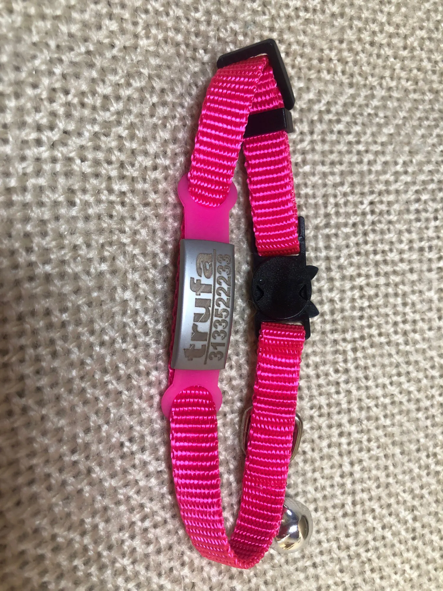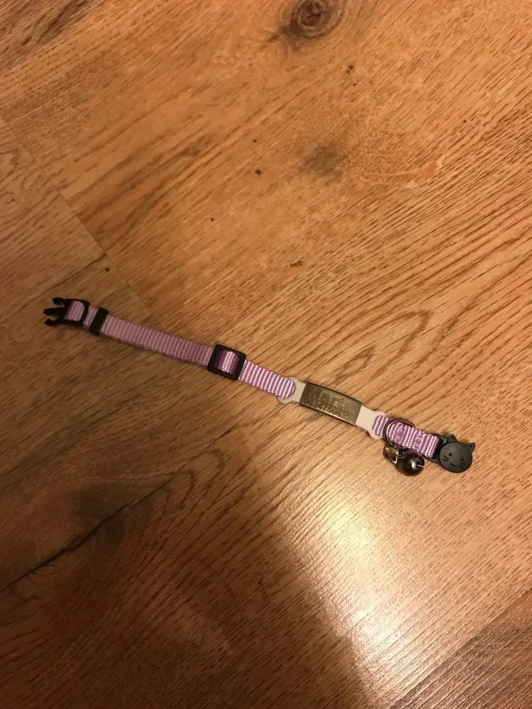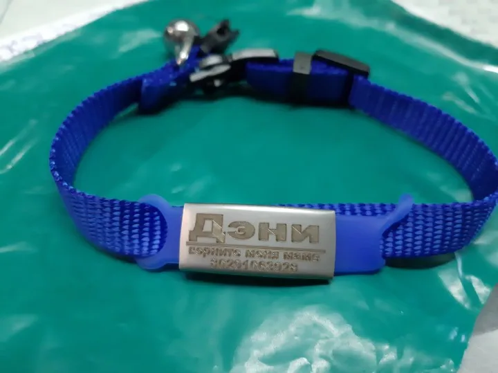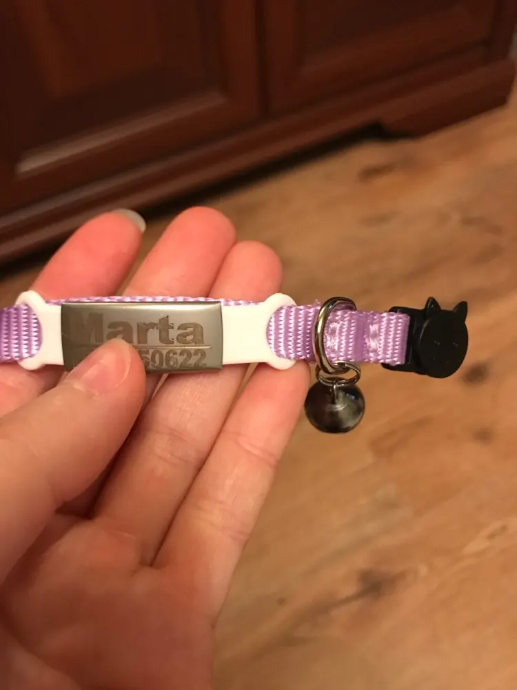 Отлично, ран, с другой стороны, ожерелье не длилось долго, 2 дня и кошка уже потеряла его. Надпись с его именем была хорошо выгравирована.