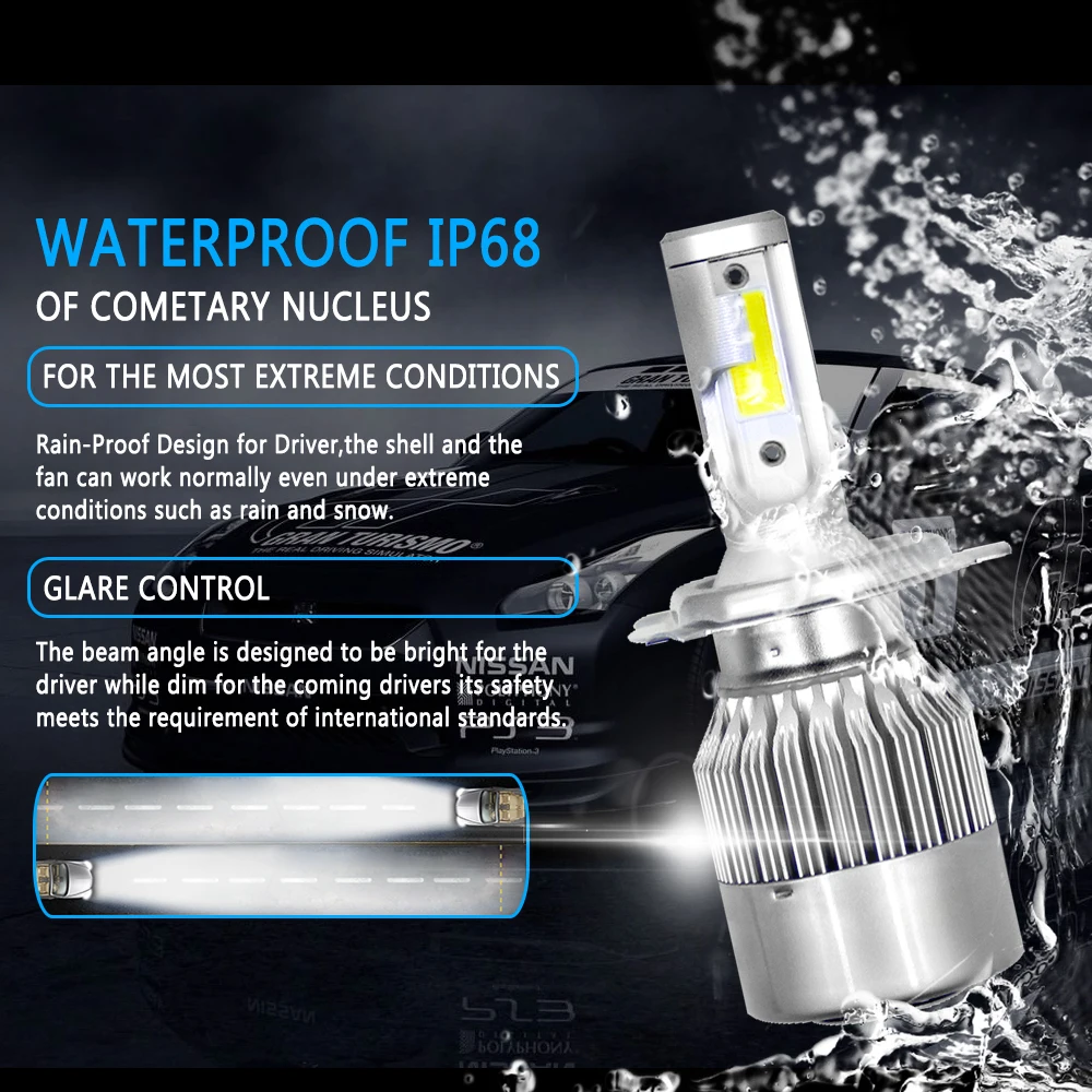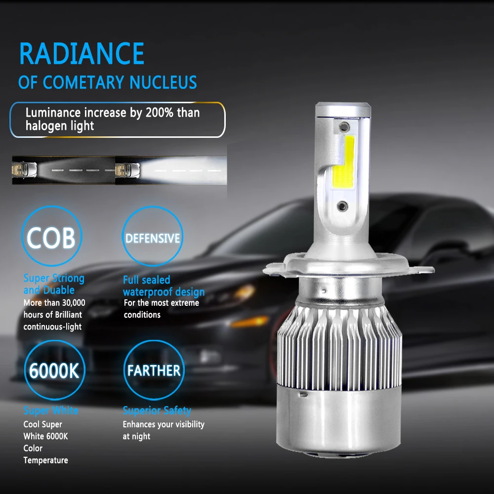 Светодиодные головсветильник лампы ovigel, C6 светодиодный H7 H4 светодиодный 3000K 6000K 8000K H1 HB3 9005 9006 HB4 H3 светодиодный автомобисветильник ные лампы H11 Светодиодный 12 В 24 в лм 72 Вт