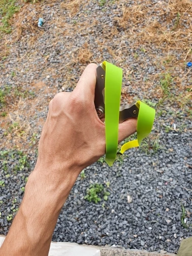 This slingshot is smaller than I thought but it is actually quite heavy! The build quality is quite good. I will be ordering these again.