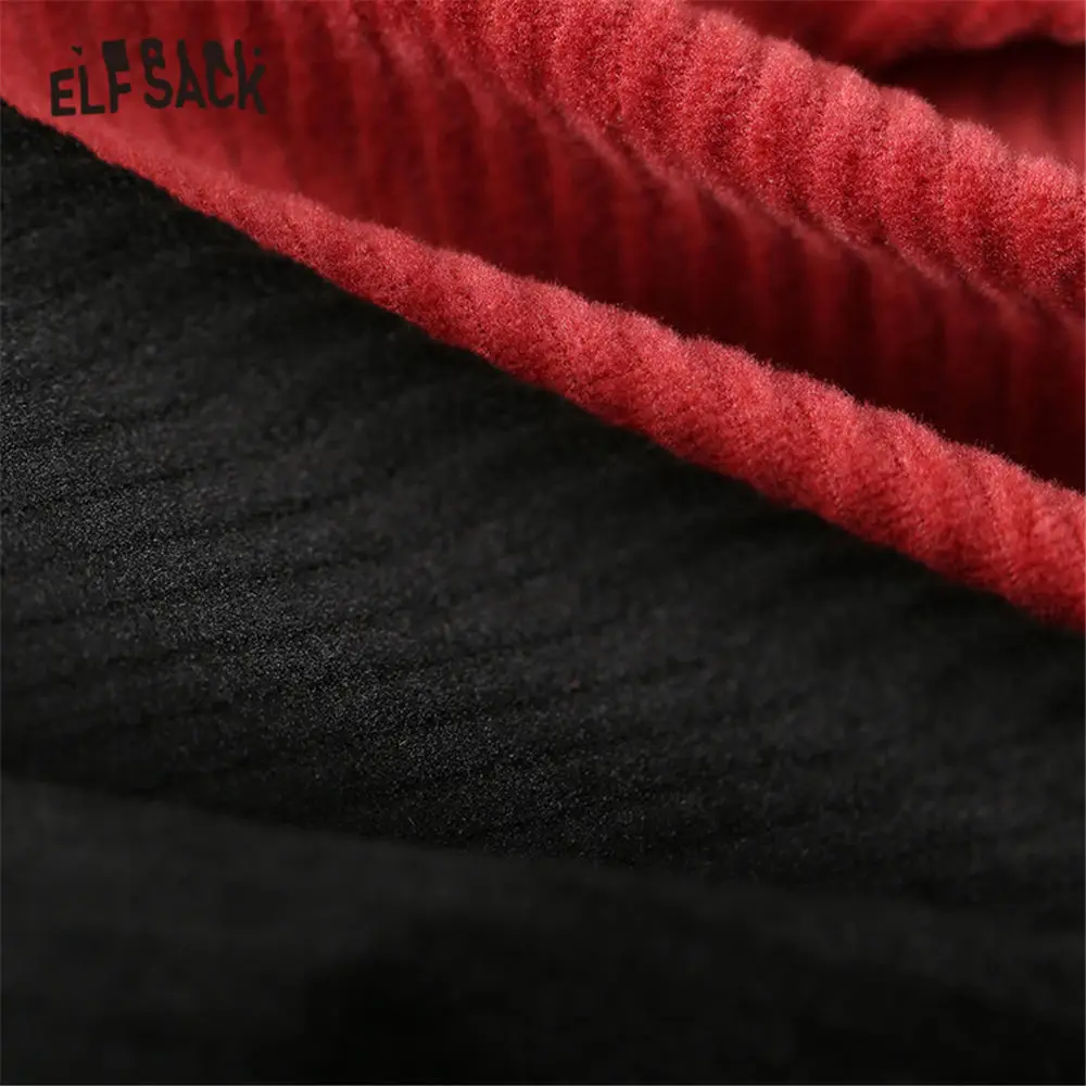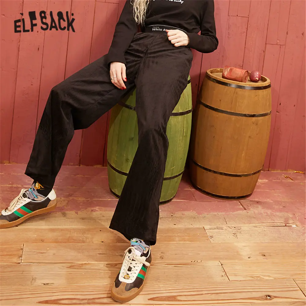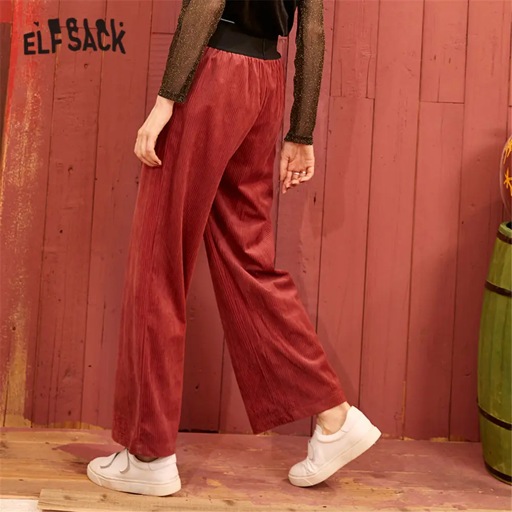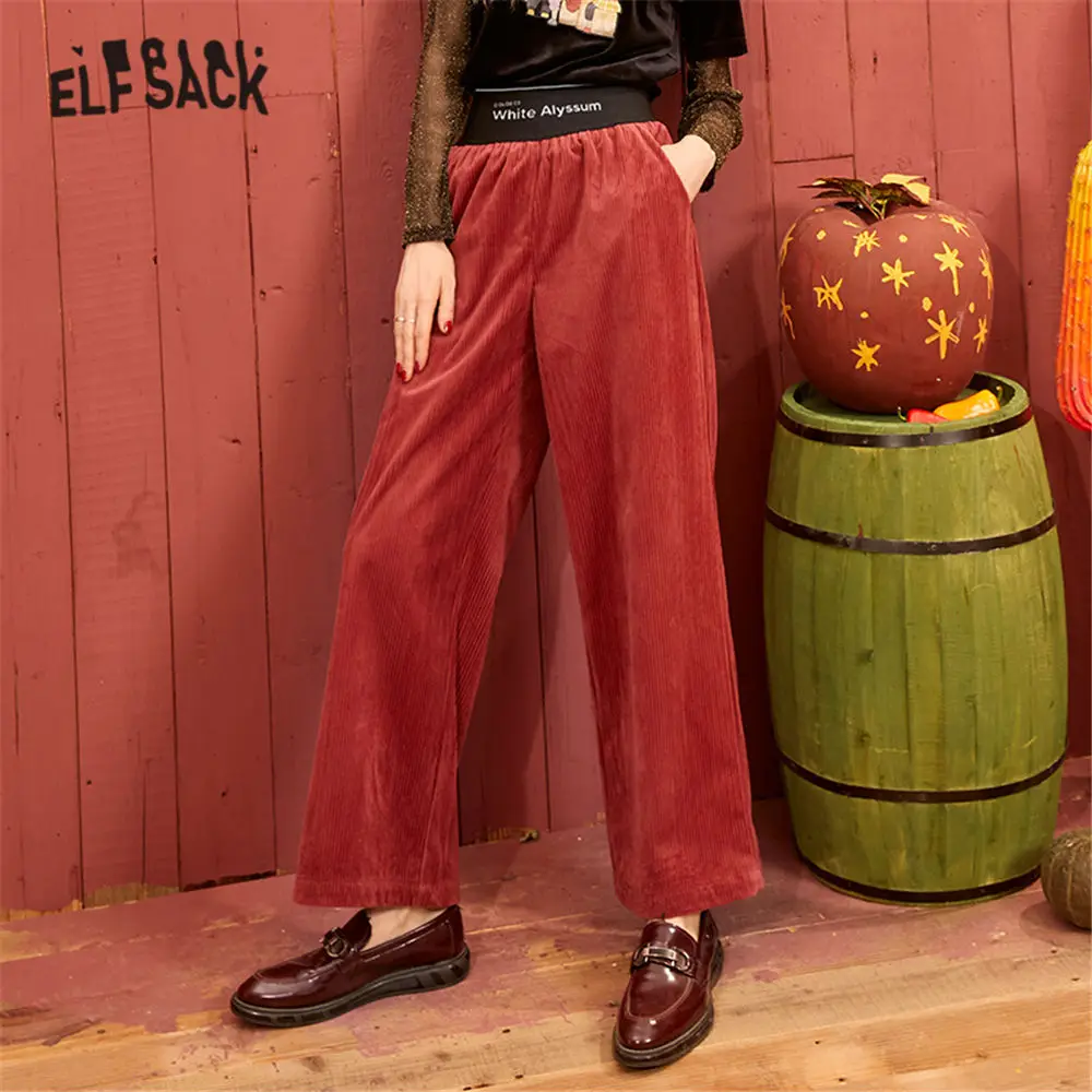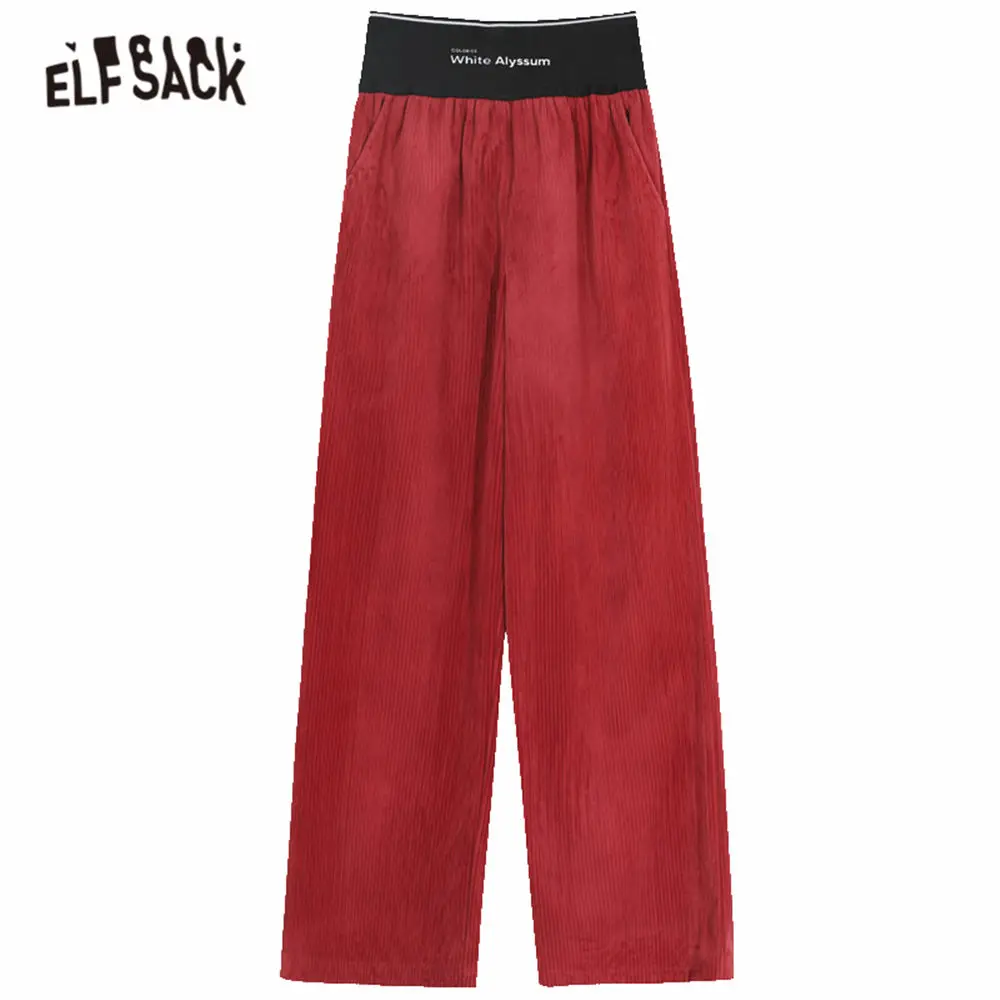 Черные однотонные вельветовые повседневные женские брюки ELFSACK с широкими штанинами, весна 2020, красные однотонные корейские женские базовые брюки с вышитыми буквами на талии