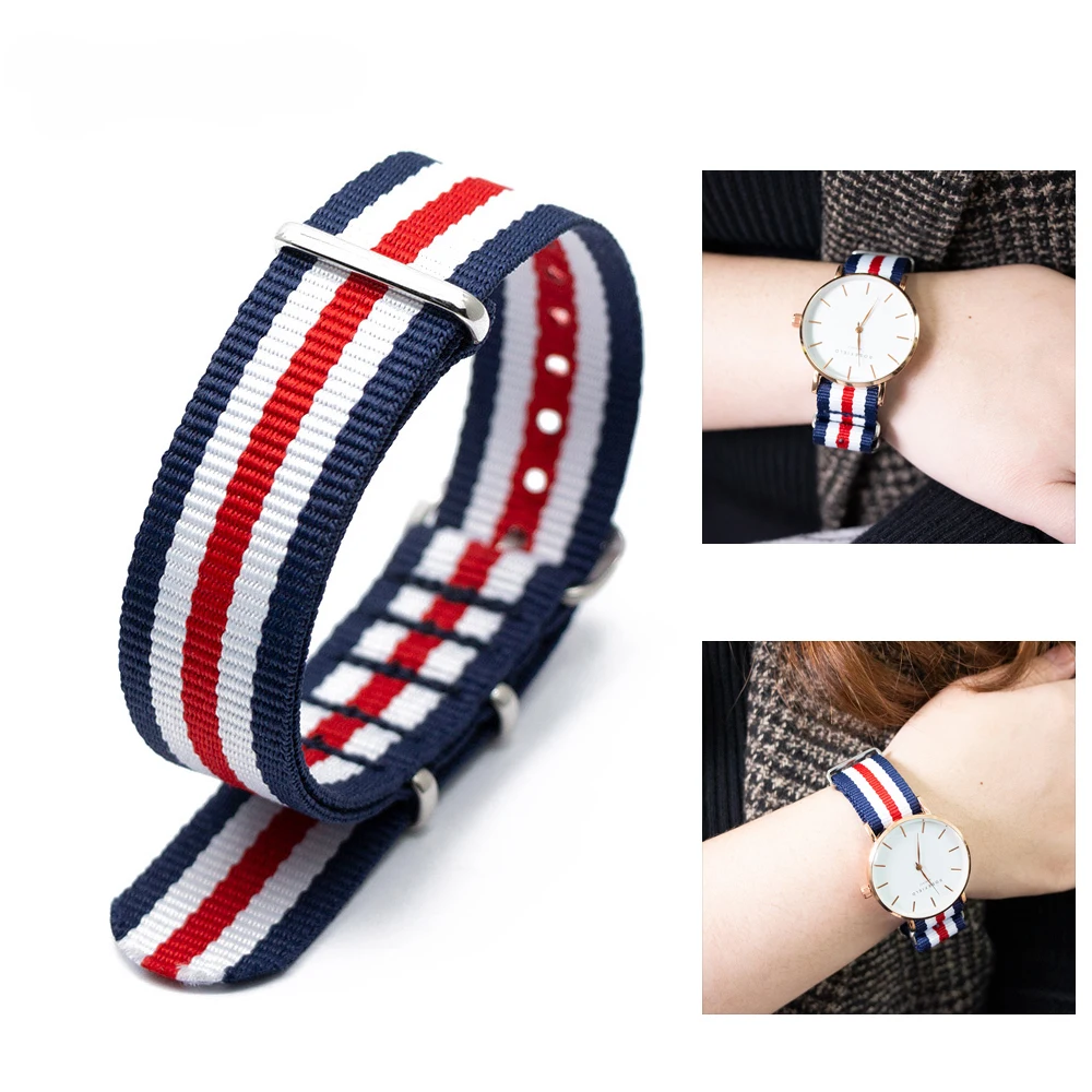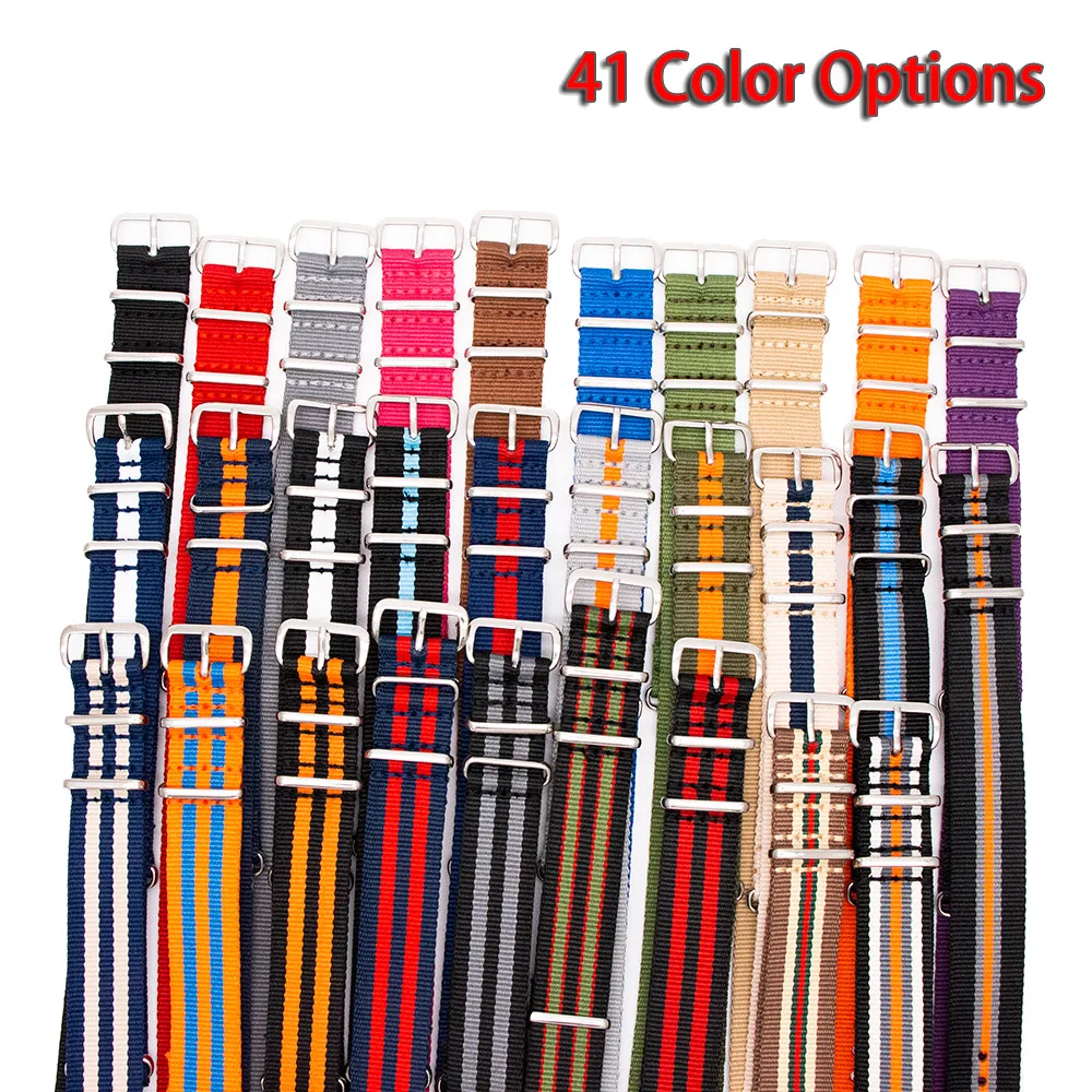 Новый Полосатый нейлоновый ремешок премиум класса с пряжкой из нержавеющей стали для мужских часов НАТО Стиль 18 мм 20 мм 22 мм 24 мм браслет