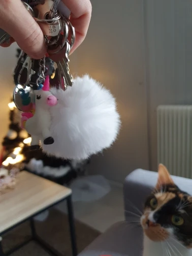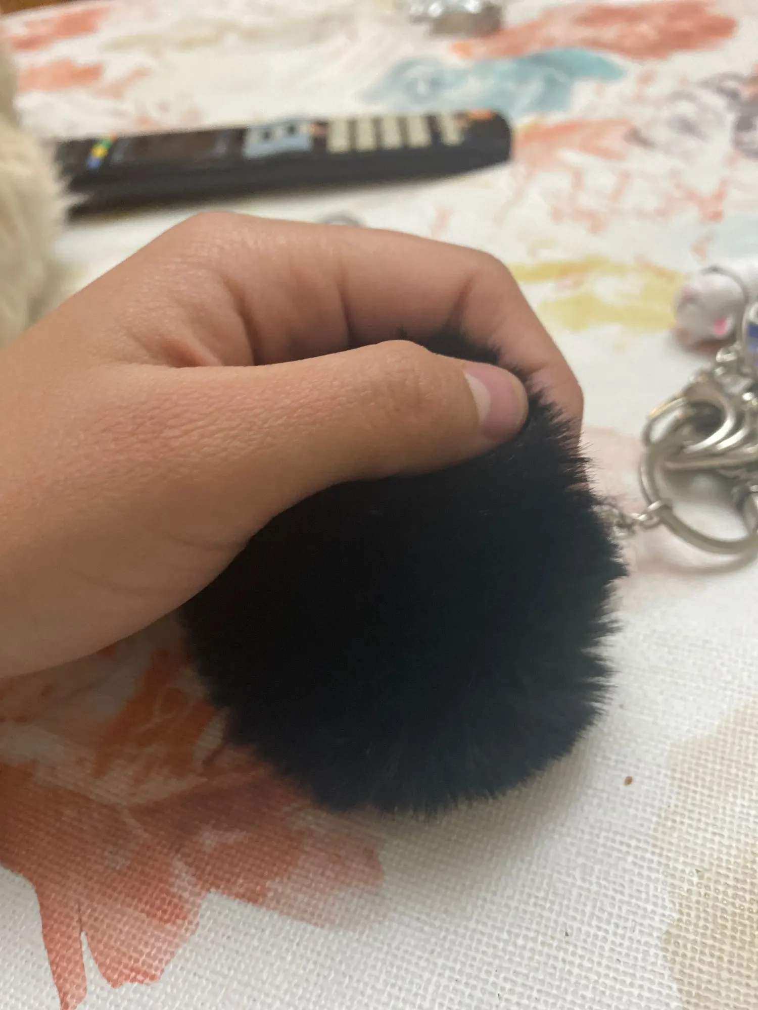 Красивый, мягкий брелок. Очень удобно, что с цепочкой. Довольна очень! Качество 10/10. Размер 10/10. Брала чёрный, он очень насыщенного красивого цвета. Буду заказывать ещё в подарок друзьям!