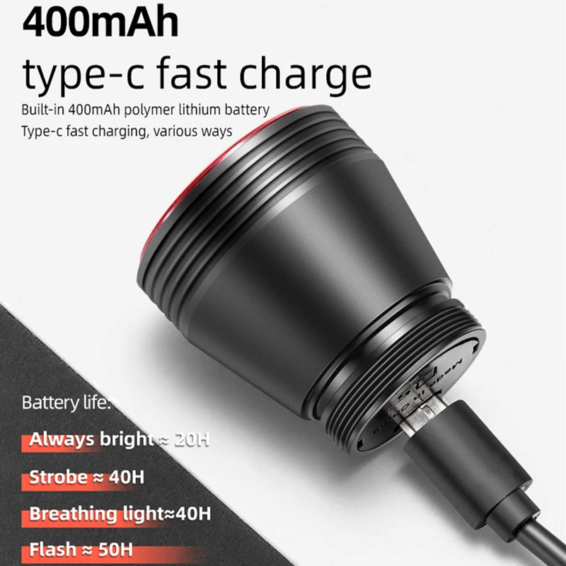 Я очень доволен этим. Четыре режима работают хорошо, и он останавливается автоматически, если нет движения в течение 30 ', но он перезапускается сразу после небольшого прикосновения. Срок службы батареи не полностью протестирован, но после 6 часов режима мигания он все еще имеет 3 точки, поэтому он может работать около 20 часов без проблем.