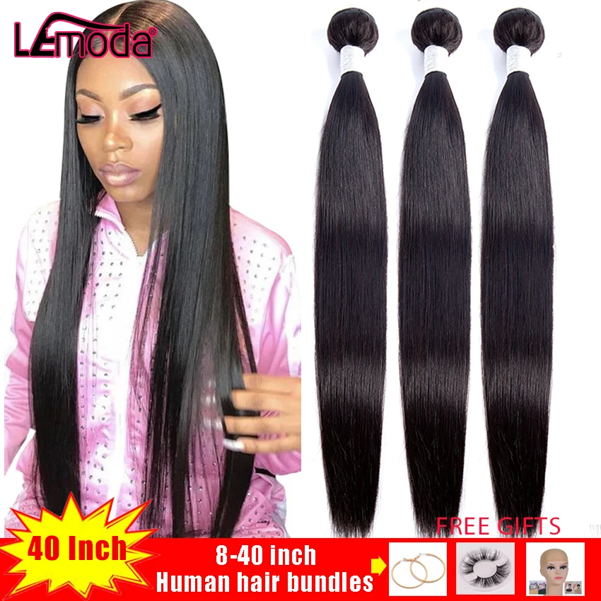 Прямые человеческие волосы пряди бразильских кости прямые волосы пряди Lemoda Remy 28 30 дюймов вплетаемые волосы для наращивания 1 3 4 пряди