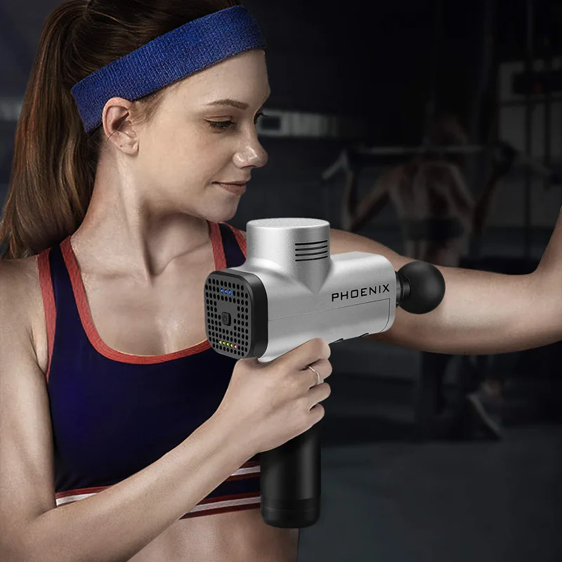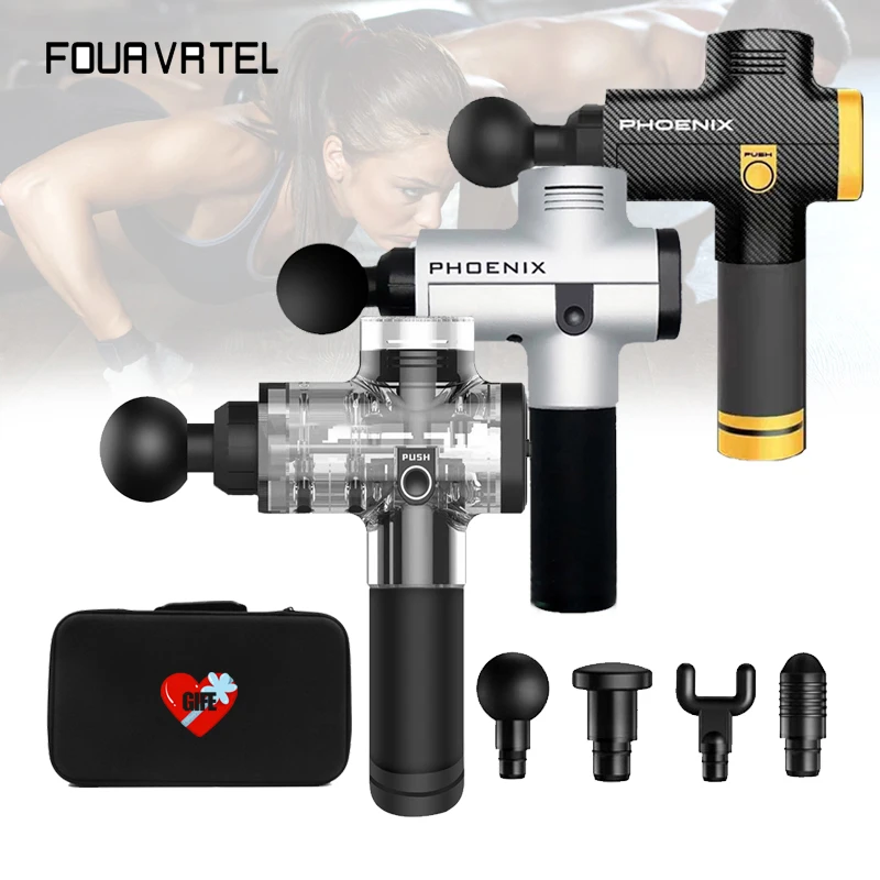 Пистолет для массажа мышц Phoenix A2, перкуссионный Массажер для глубоких тканей, терапевтический пистолет для упражнений, обезболивающий Массажер для мышц, 4 головки с сумкой