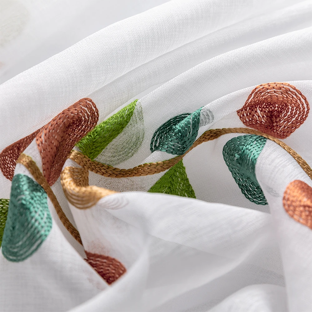 Тюлевые шторы MRTREEES с вышивкой в виде листьев для гостиной, кухн...