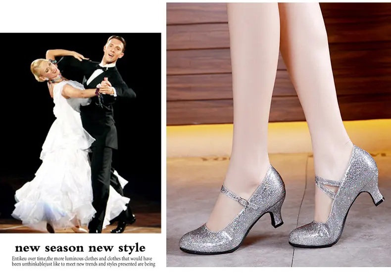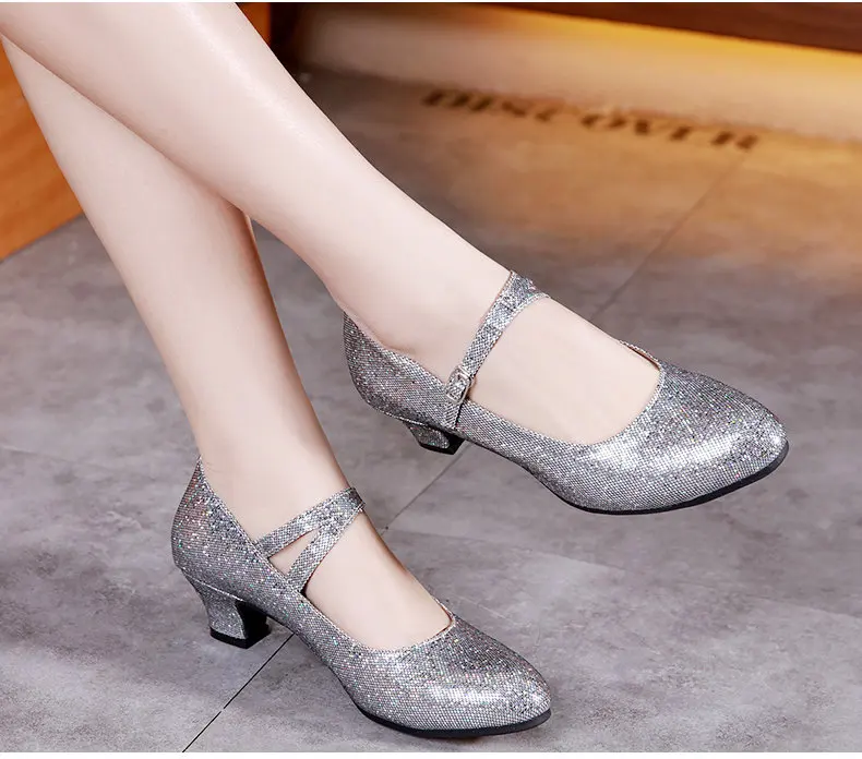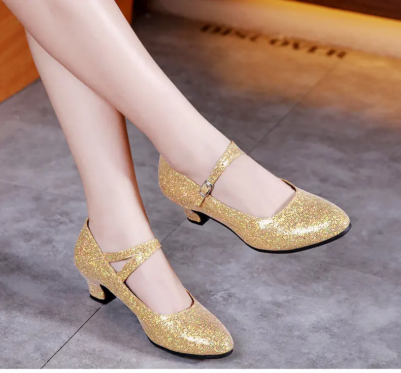 Туфли женские на высоком каблуке, профессиональные блестящие туфли для латиноамериканских танцев, Танго, сальсы, бальные туфли с закрытым носком, золотистыеСеребристые