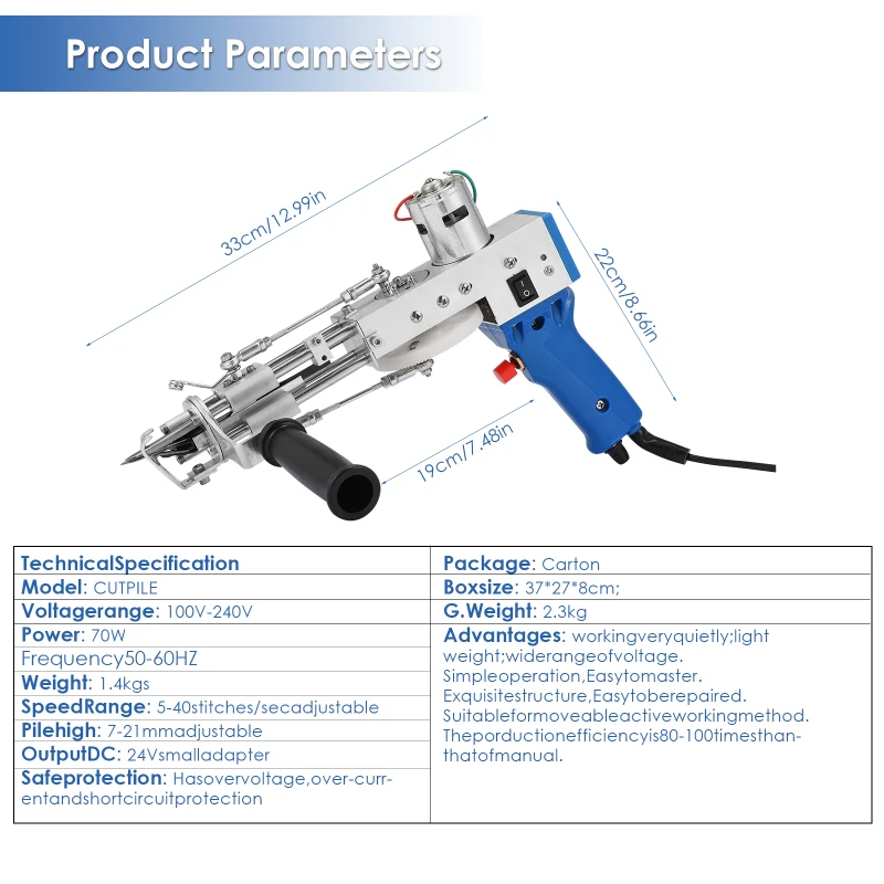 [Защита безопасности]: пистолет tufting имеет функции защиты от перенапряжения, перегрузки по току и короткого замыкания, которые могут избежать несчастных случаев во время использования