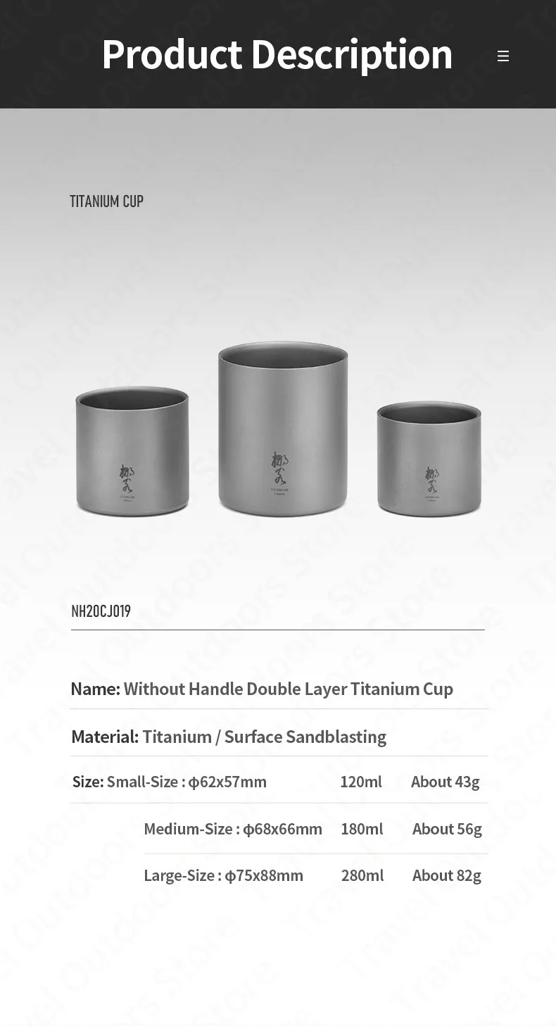Стиль: 200 мл титановая чашка (без крышек)/300 мл титановая чашка (с крышкой)/