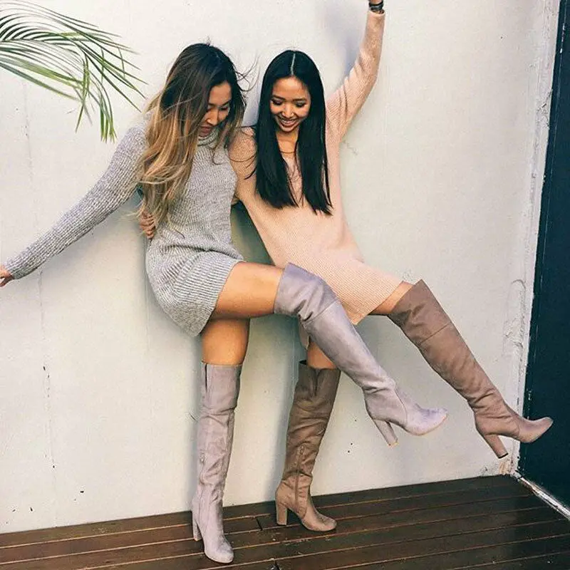Женское вязаное платье-свитер с высоким воротом и длинным рукавом