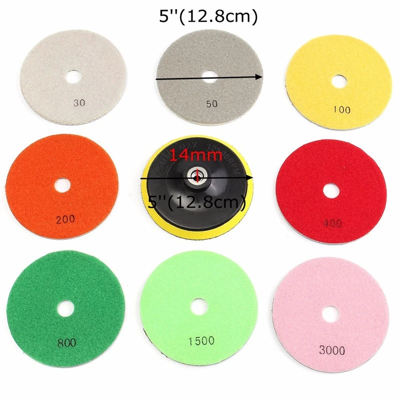 Набор пластинок для полировки гранита, мрамора, бетона, плитки, 5 дюймов, для влажной и сухой полировки гранита, бетона, мрамора, плитки, HHO-9Pcsкомплект