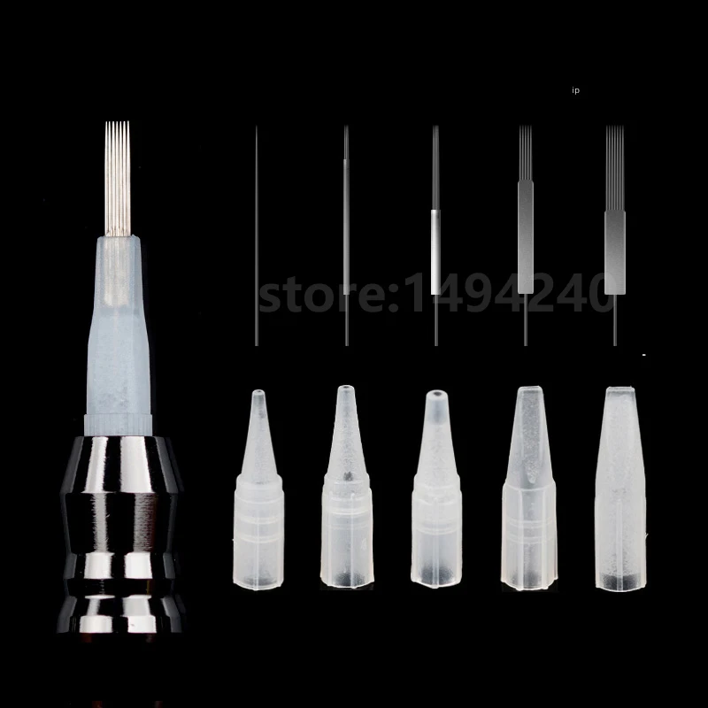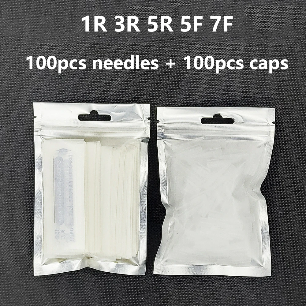 100 шт. 1R 3R 5R 5F 7F PMU иглы + иглы Типсы Одноразовые стерилизованные Профессиональные тату иглы для перманентного макияжа бровей