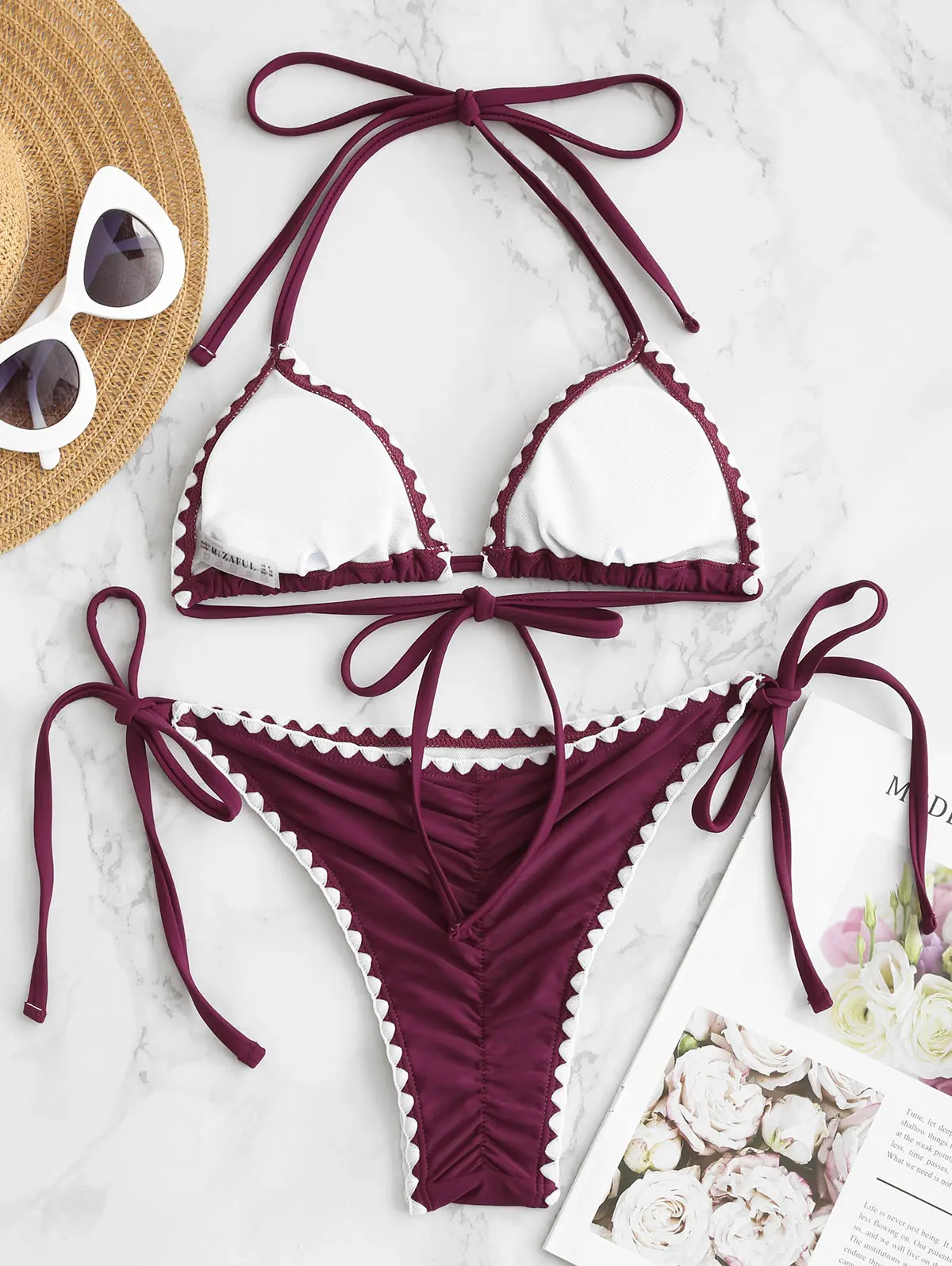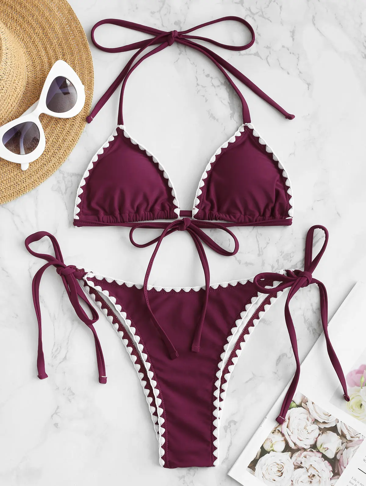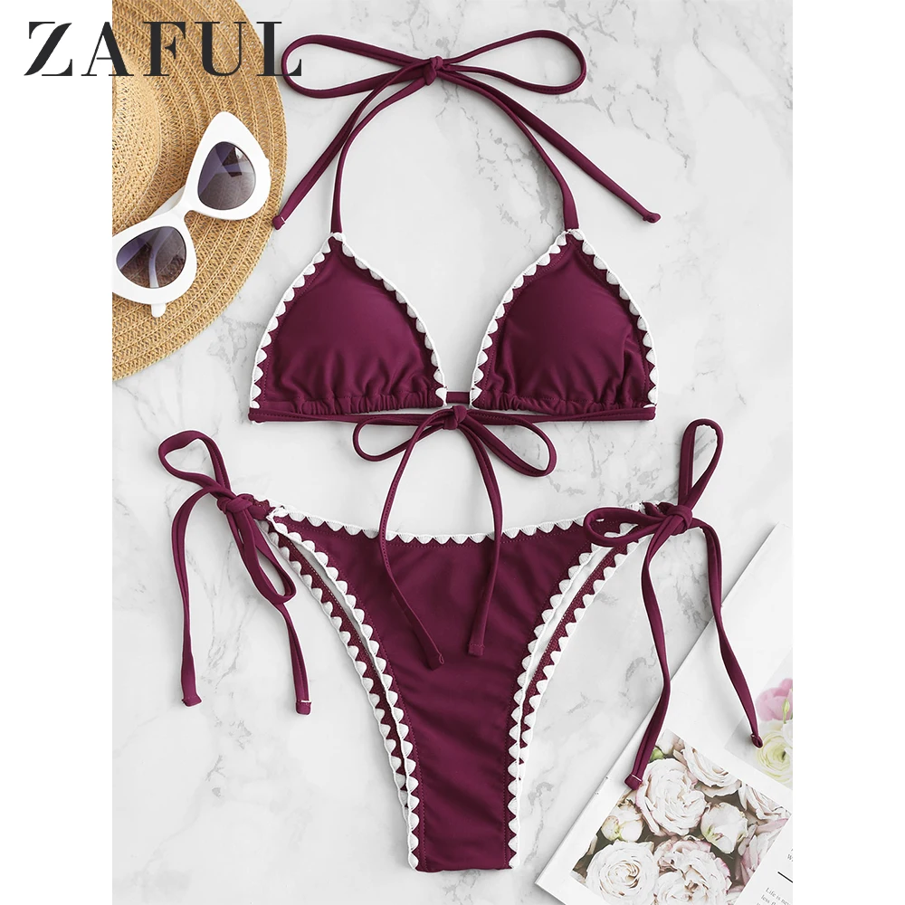 Женский купальник-бикини ZAFUL Plum Pie, сексуальный купальник-бикини с завязками на шее, без косточек, с низкой талией