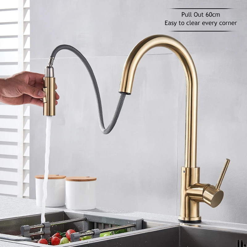 Матовый кухонный смеситель с выдвижным сенсорным экраном и поворотом на 360 градусов