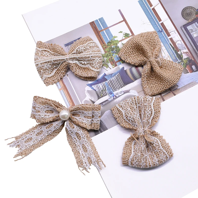 Джутовые украшения сделай сам, винтажные натуральные галстуки-бабочки, джутовые цветы, товары для украшения свадьбы, Дня Святого Валентина