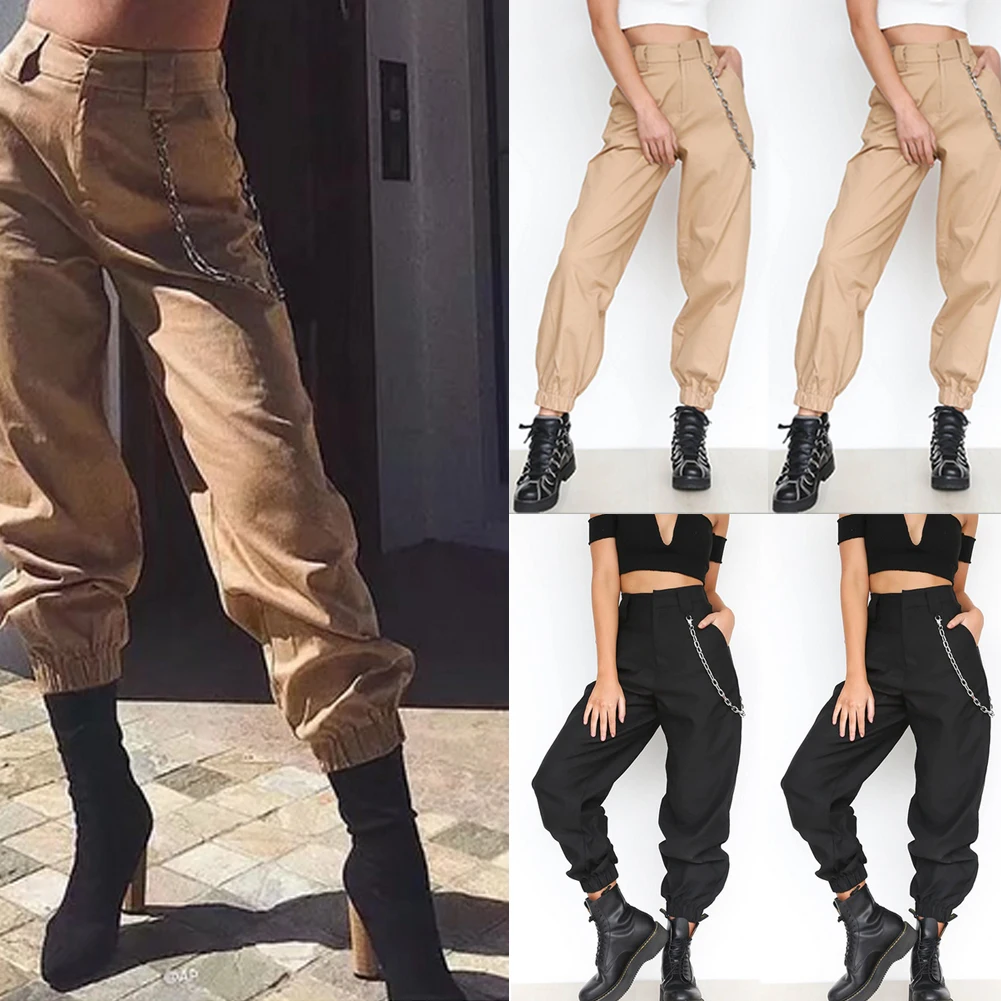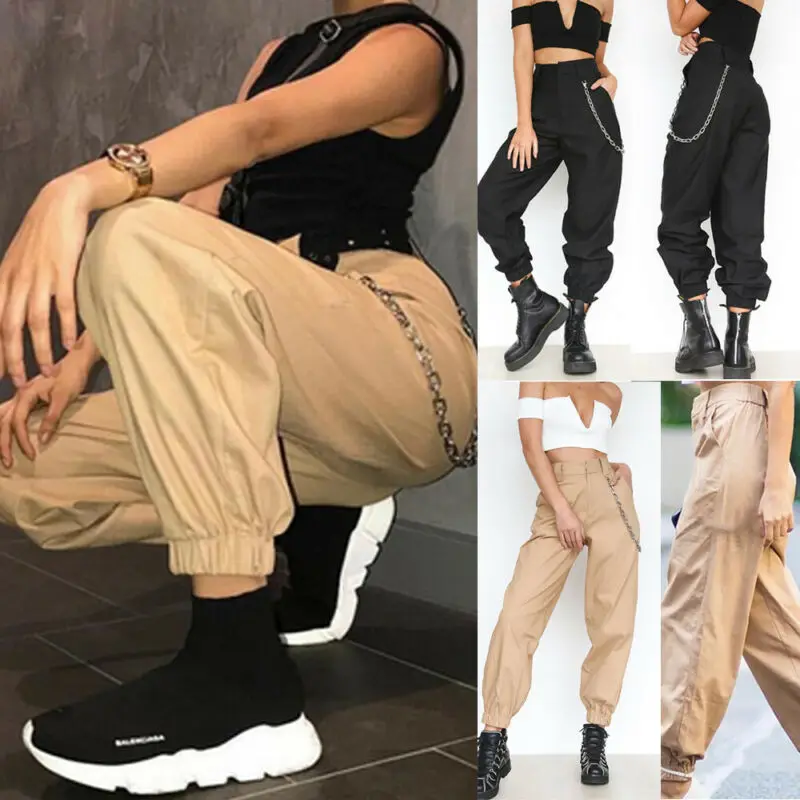 Женские модные однотонные брюки-карго с высокой талией в уличном стиле, повседневные брюки-султанки в стиле хип-хоп для танцев