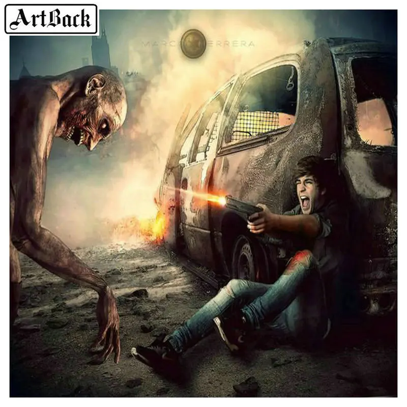 Полноформатная и круглая алмазная живопись, картина с зомби, алмазная вышивка 5d, узор смерти зомби, ТВ, Алмазная мозаика, искусство, 100x100 см