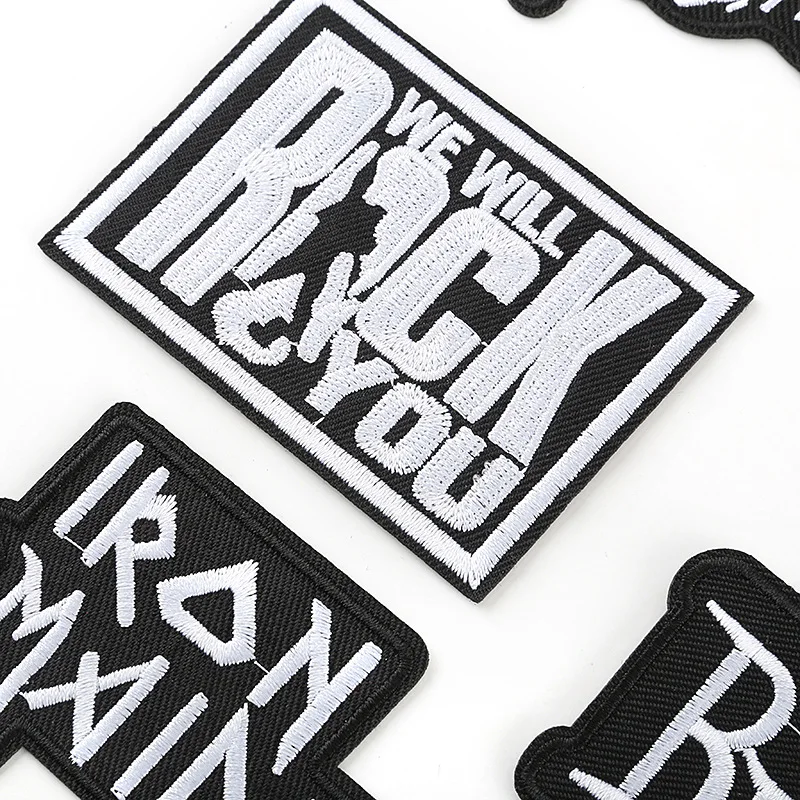Черно-белые английские буквенные лозунг значки вышитые термоклейкие нашивки тканевые Стикеры для одежды сумки