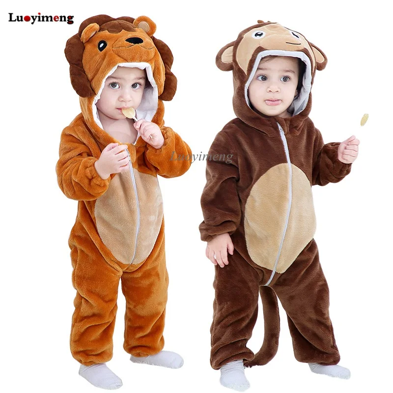Детский фланелевый комбинезон-комбинезон, с рисунком животного