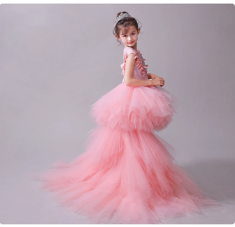 Платье принцессы для девочки с цветами, детское длинное платье для свадьбы, подружки невесты, детские розовые платья-пачки вечерние вечерняя одежда для девочек, длинные платья для конкурса