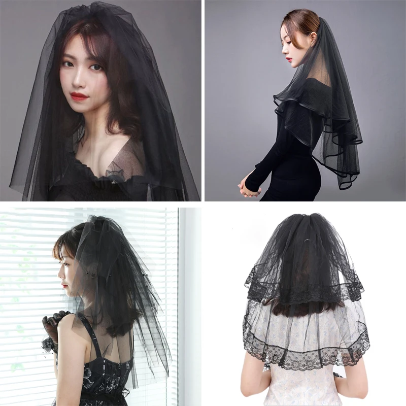 Женская многослойная черная Тюлевая короткая свадебная фата с гребнем для Хэллоуина косплевечерние