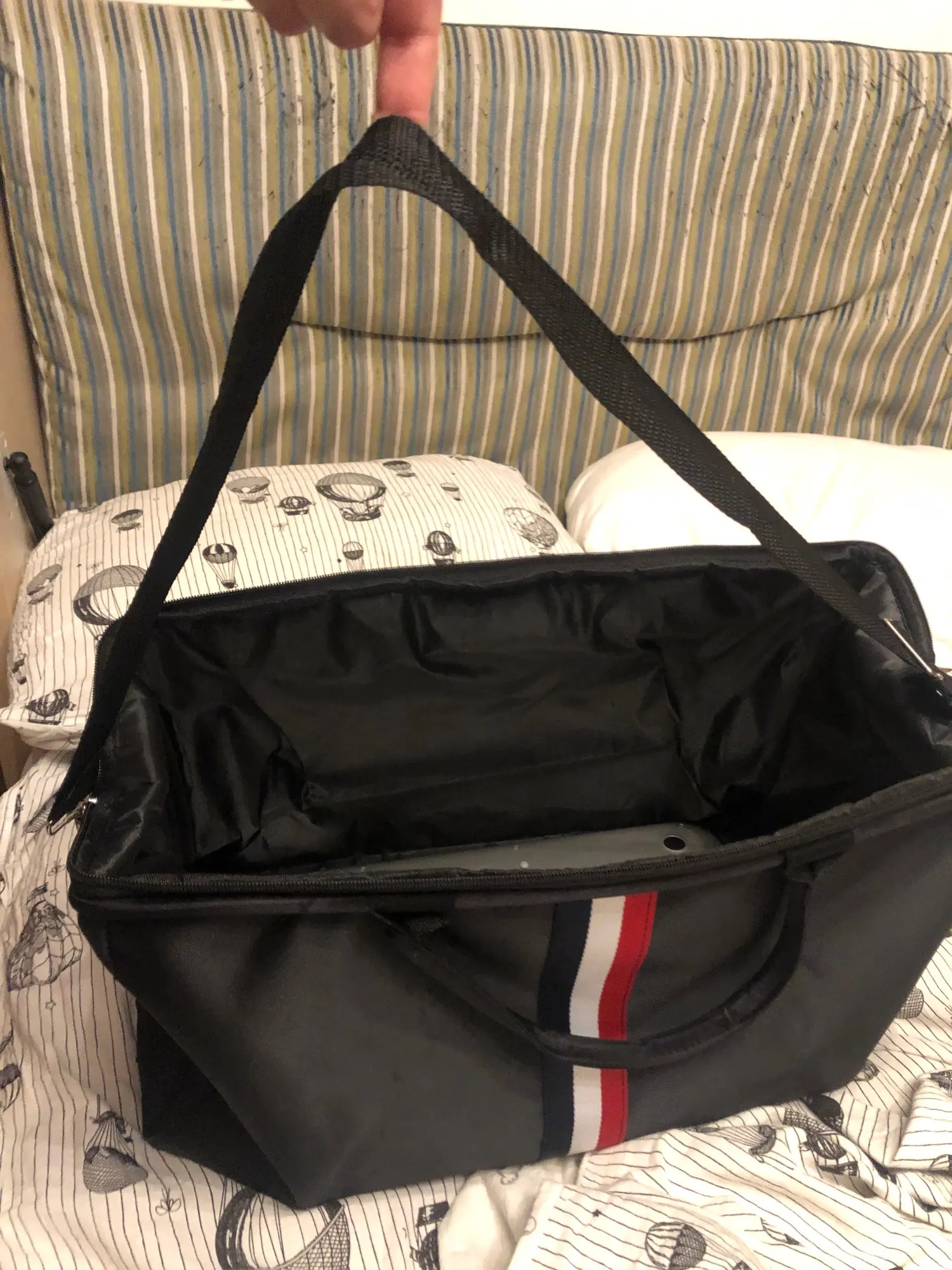 Хороший пакет spacy, который легко складывается, когда пустая. Я использую его как спортивную сумку, но он также может использоваться как weekender.