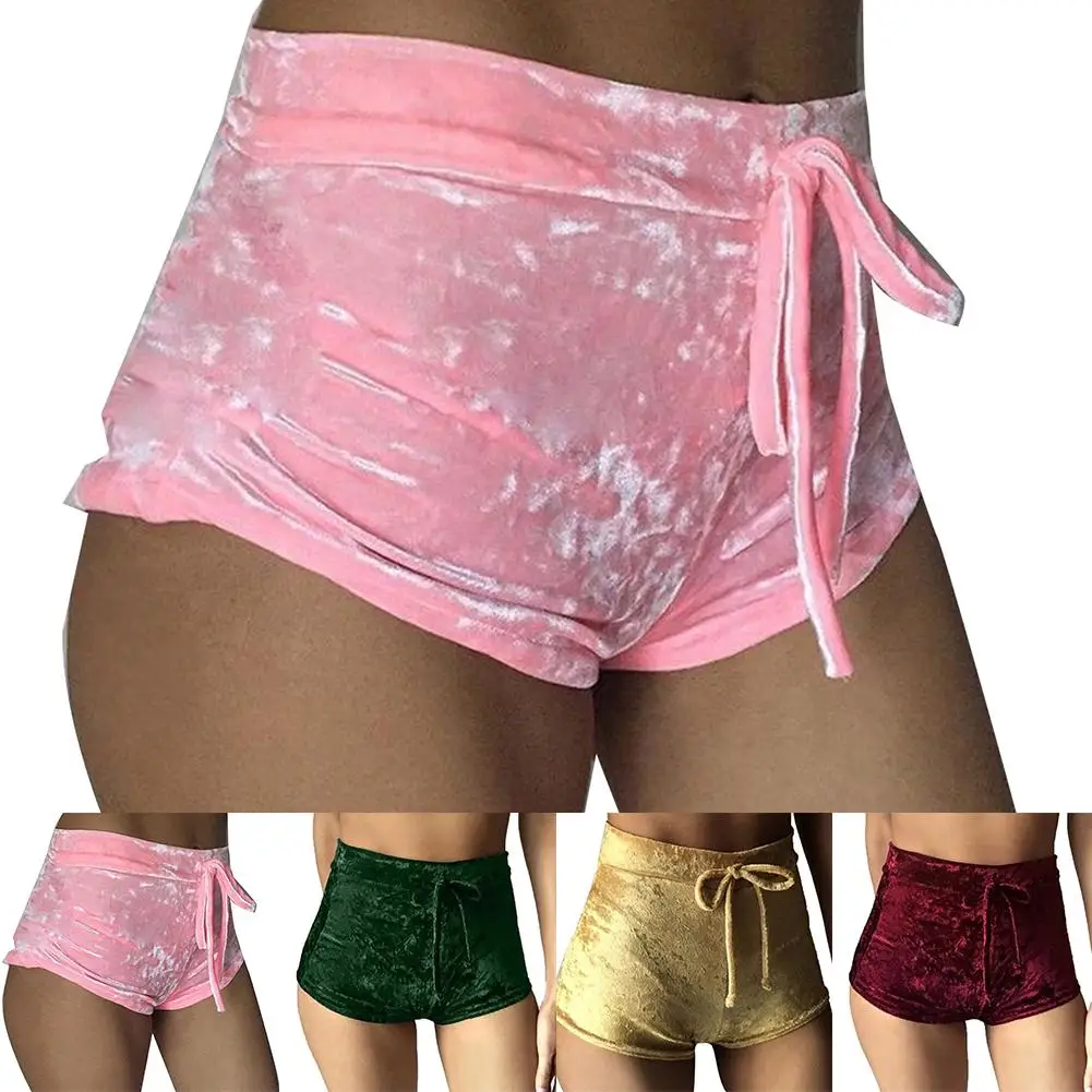 Женские бархатные шорты на шнуровке, повседневные обтягивающие шорты с высокой талией, зима-весна 2021
