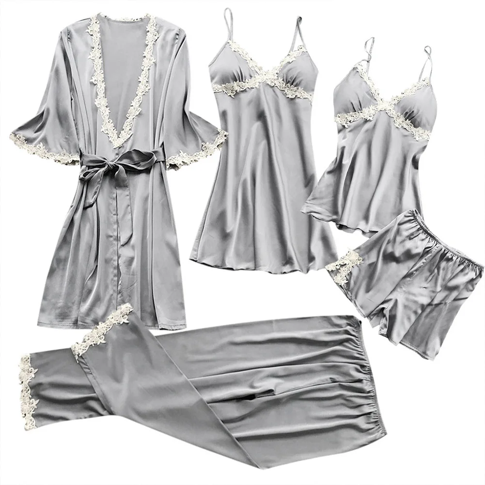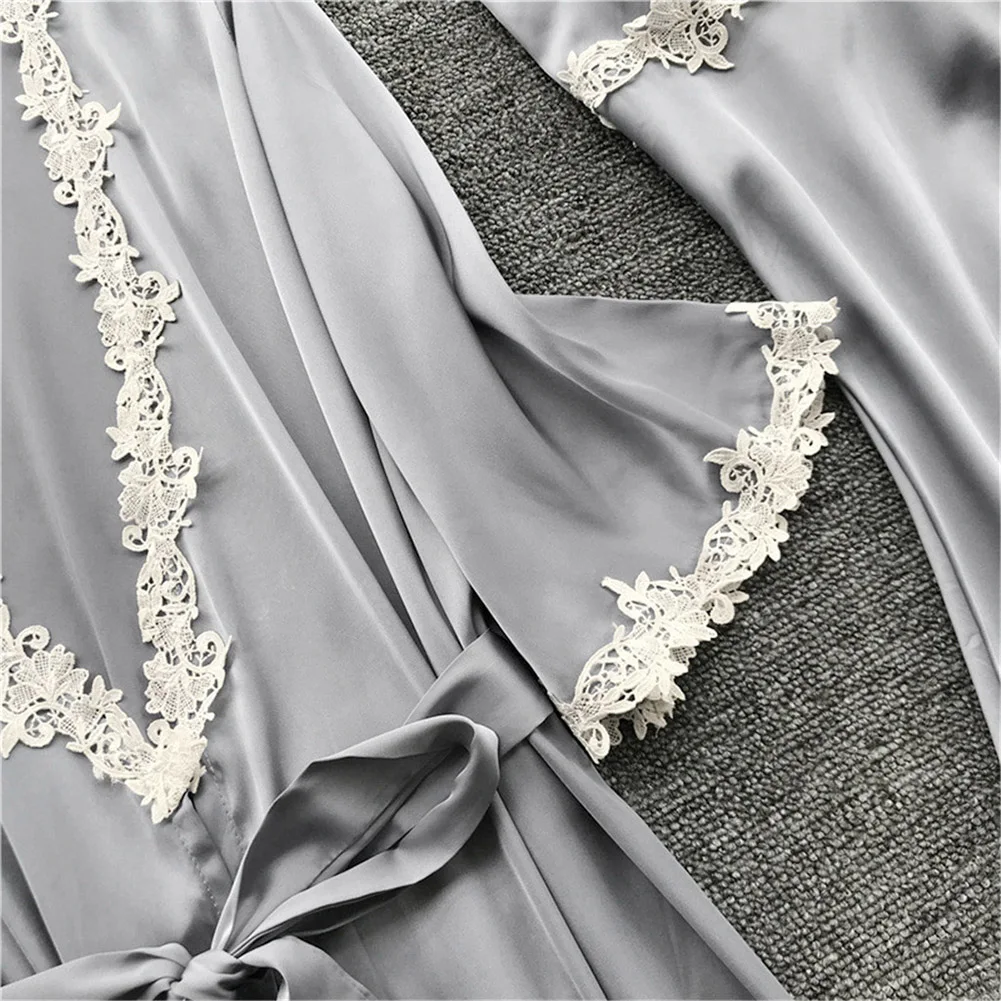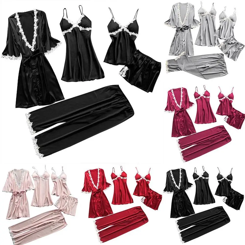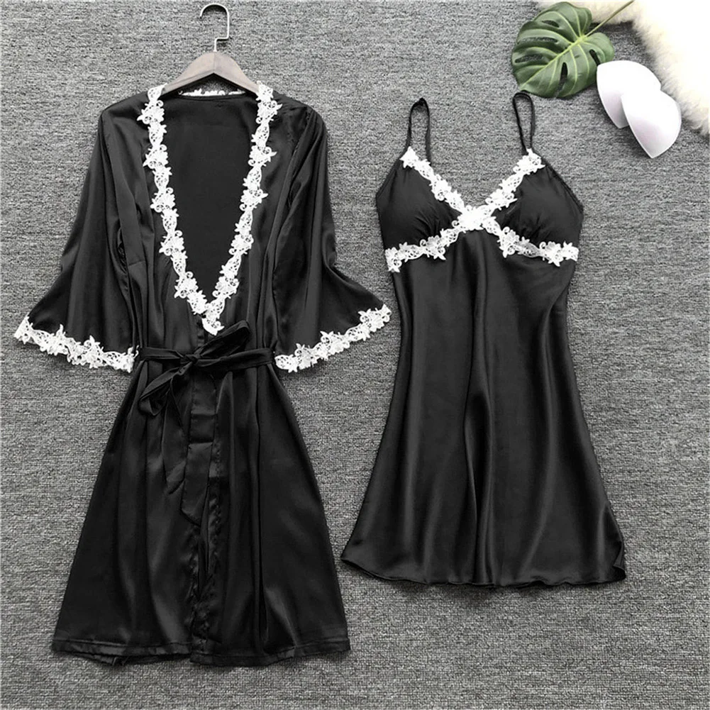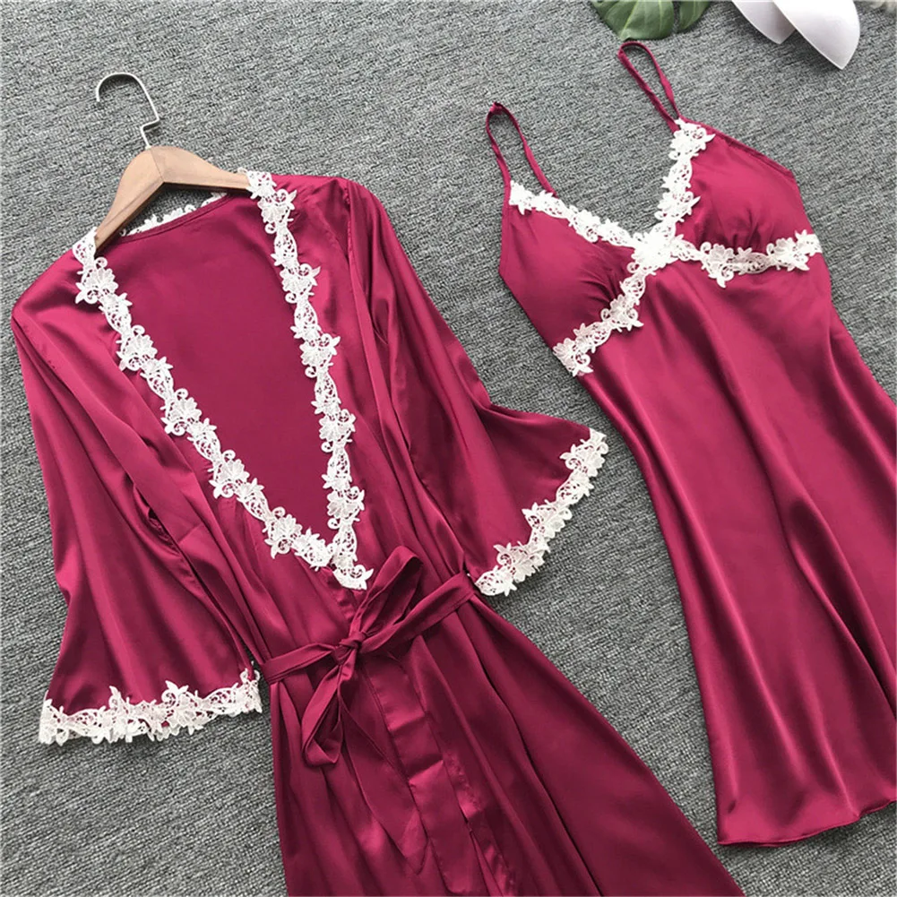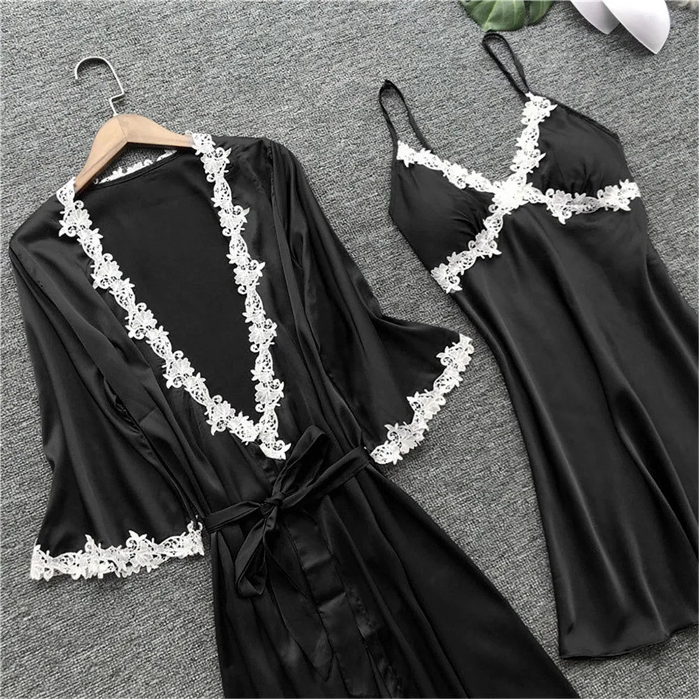 Комплект женский кружевной из халата и сорочки, 5 шт., комплект сексуальной пижамы