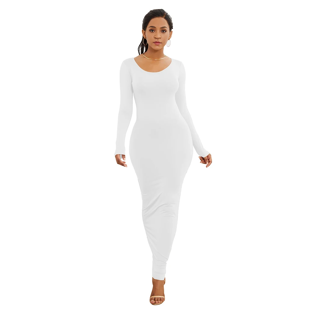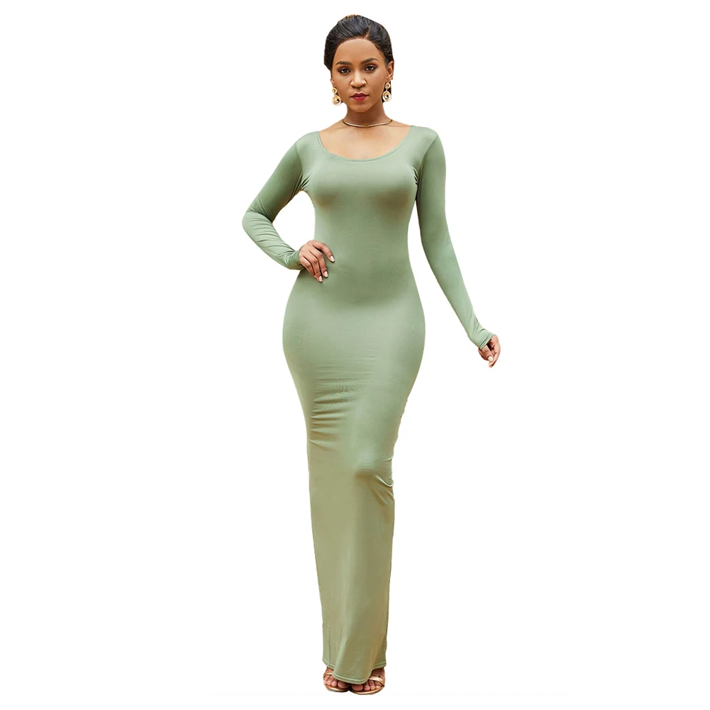 Лидер продаж; Платья на лето и весну осенние пикантные Женские однотонные Цвет с длинным рукавом, круглый вырез, облегающее длинное платье в пол