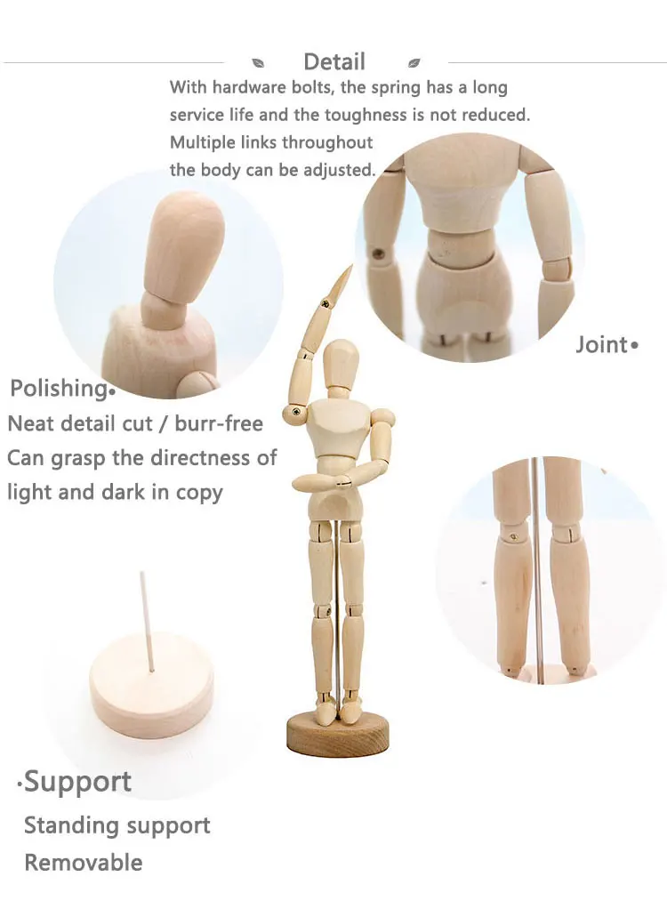 Описание:100% новый и высокое качествоЦвет: как на фотоМатериал: деревоРазмер:Общий человек:S: 15,5*2,5 смM:21*5,5 смL: 32,5*7 смРука соединения:S:18*4 смМ: 25*5,5 смL:29*6 см1 см = 0,39 дюйма, 1 дюйм = 2,54 смПосылка включает в себя:1 шт. деревянная художественная модель