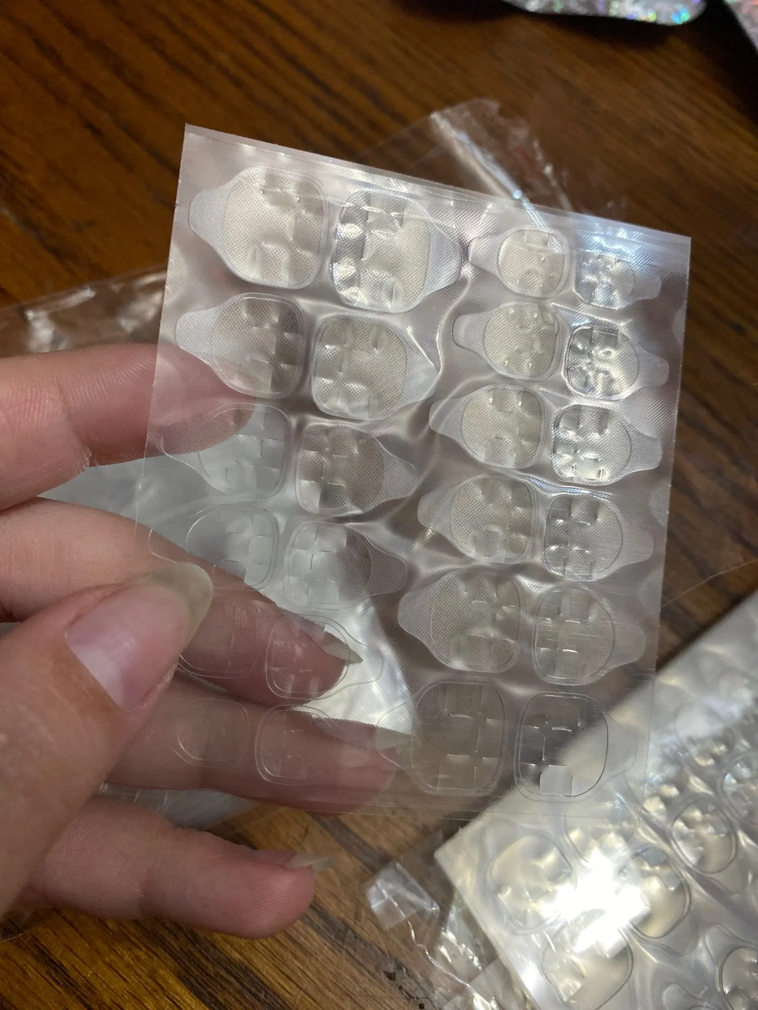 Подходят к ногтями которые можно заказать на Али. Они как раз без клеевого слоя. Хватает на 1 вечер. Свое дело делают. Одной штуки хватает на 2 комплекта ногтей. Рекомендую и товар и продавца. Доставка быстрая отдельной посылкой.