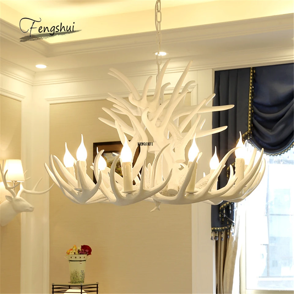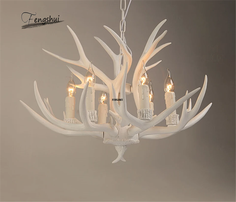 Скандинавская светодиодная люстра с рогами из смолы, подвесной светильник в стиле лофт, индастриал, самец оленя, рога для спальни, гостиной, кухни