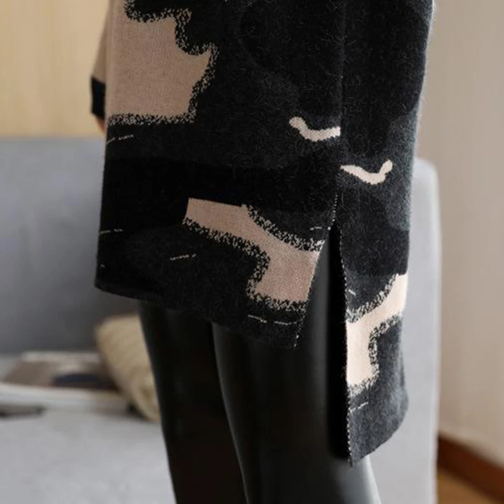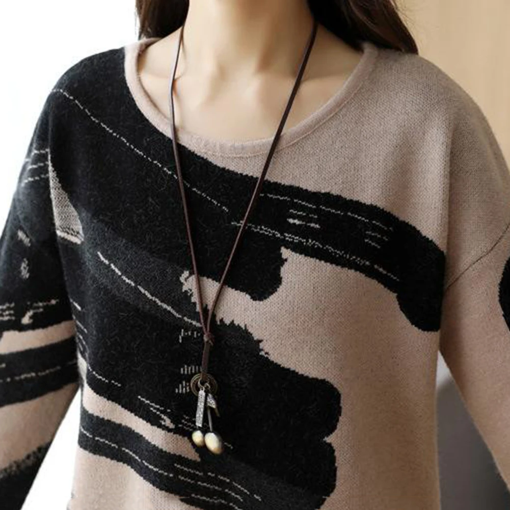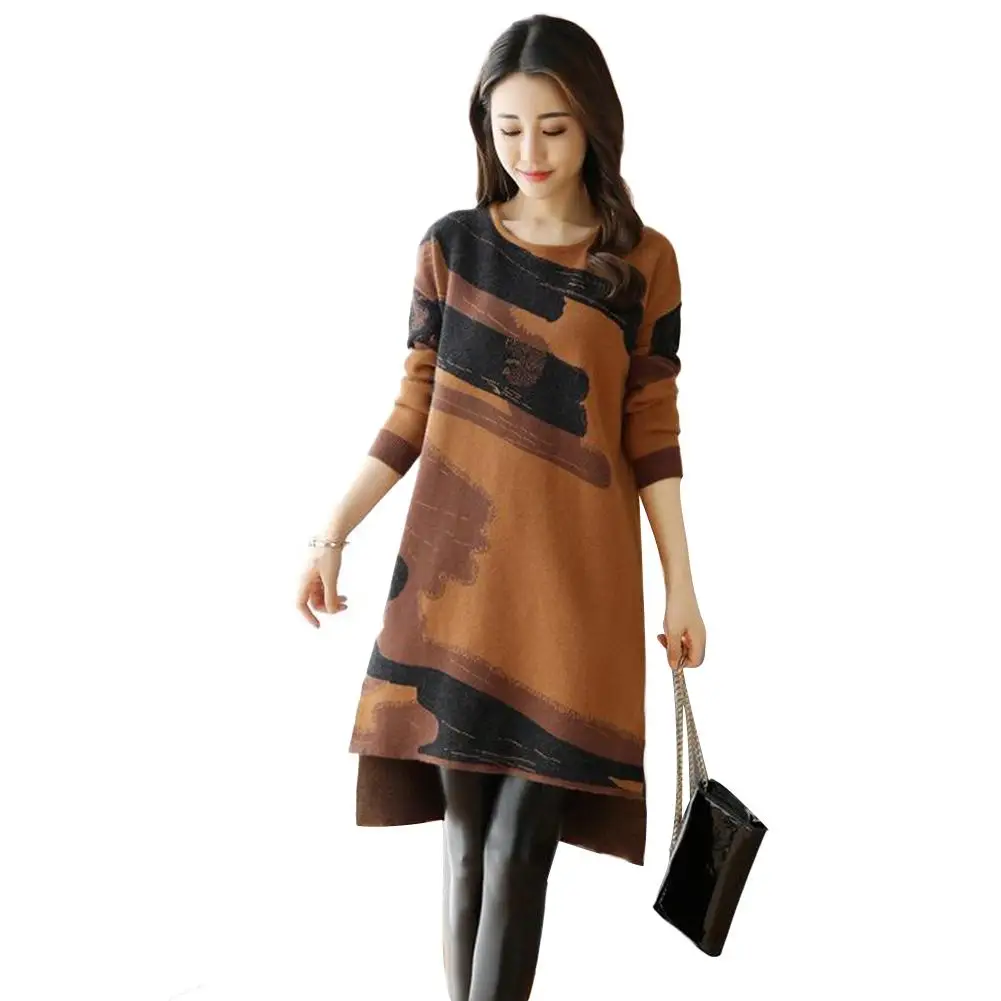 Модное платье с принтом; Женская повседневная с длинными рукавами и круглым вырезом; Трикотажный пуловер, Повседневное платье с круглым вырезом; Трикотажный пуловер платье для женщин