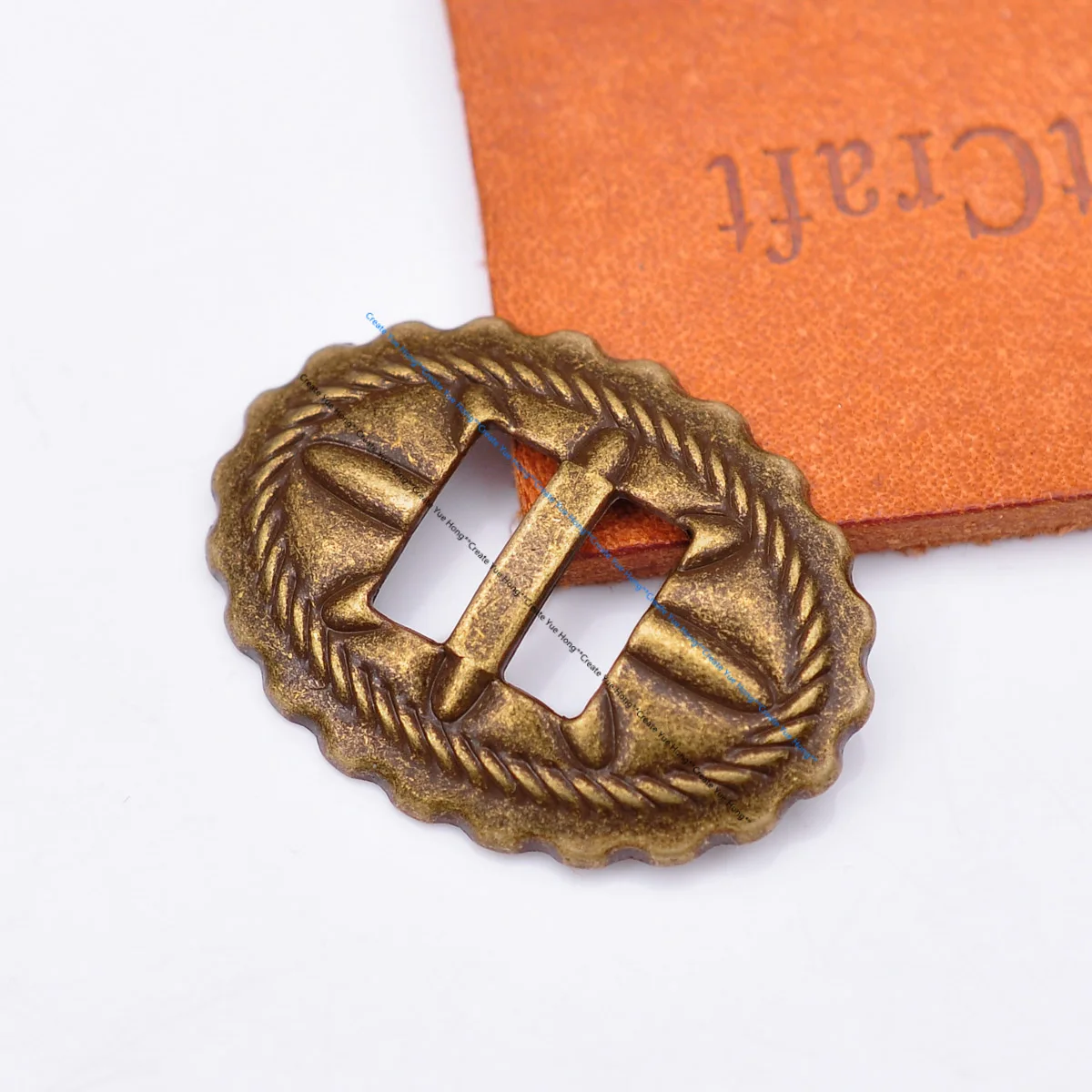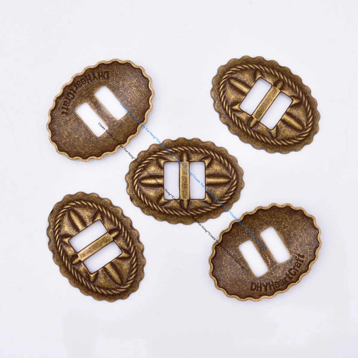 Качественный винтажный латунный пояс для узелков в Западном и западном стиле, для узелков, кожевенного ремесла, Овальный с прорезями, 32*24 мм