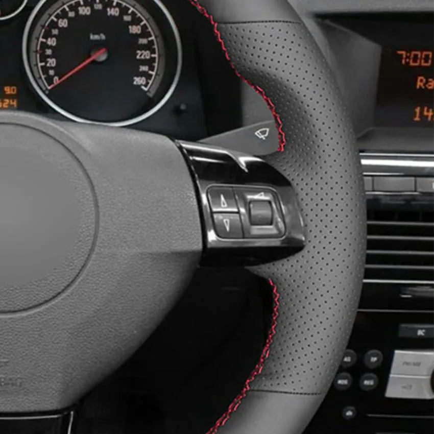 Оплетка на руль для Opel Astra 2004-2009, зафлера 2005-2014, Signum 2005-2009, Vectra 2005-2009, Holden Astra, черная, искусственная кожа