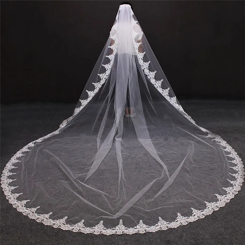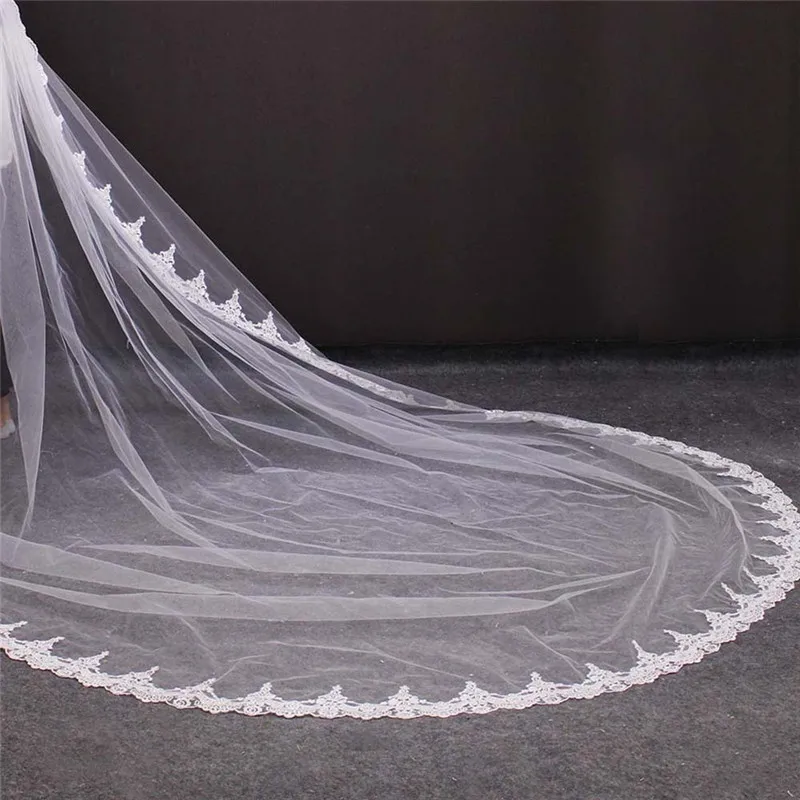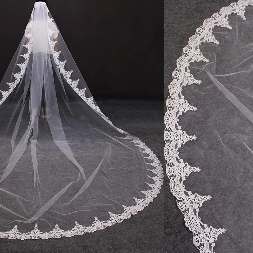 Длинные Кружевные Свадебные вуали 3 м длинная белая цвета слоновой ...