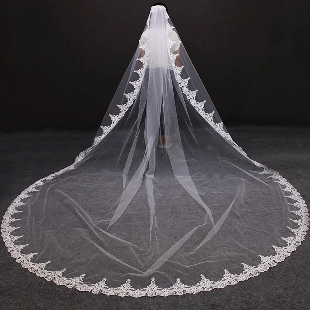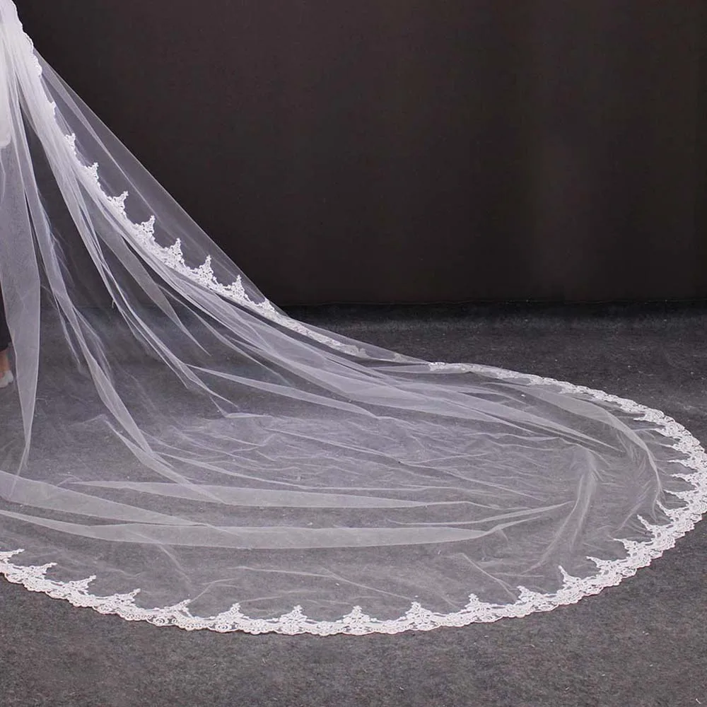 Однослойная кружевная свадебная фата без гребня, 3 метра, крышка дл...