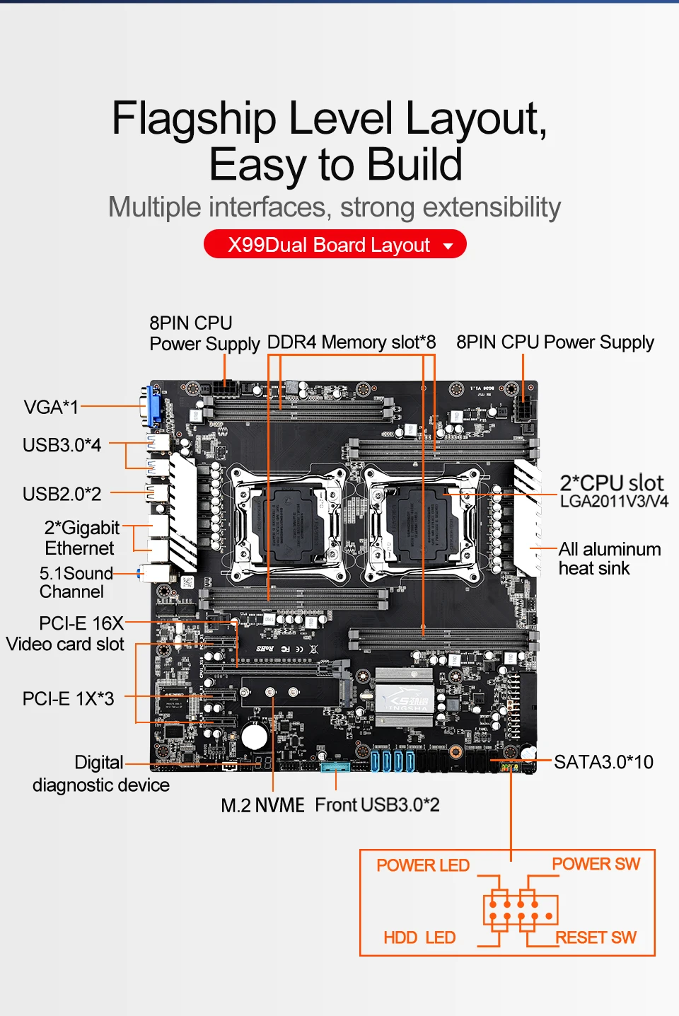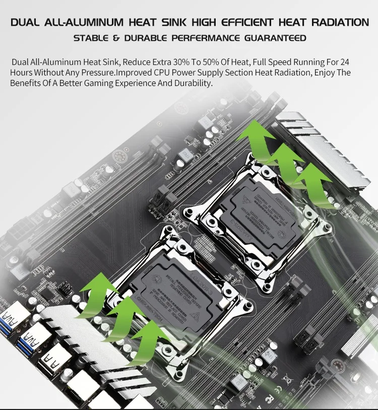 Поддержка LGA 2011-V3 / V4 Полная серия ЦП8 * DDR4 RAM слот, поддержка 2133/2400 MHz Dual CPU 8-канальная архитектура до 256GBБортовой высокоскоростной интерфейс NVMe M.2Двойной гигабитный EthernetДисплей отладки с двумя цифрами10 * SATA3.0