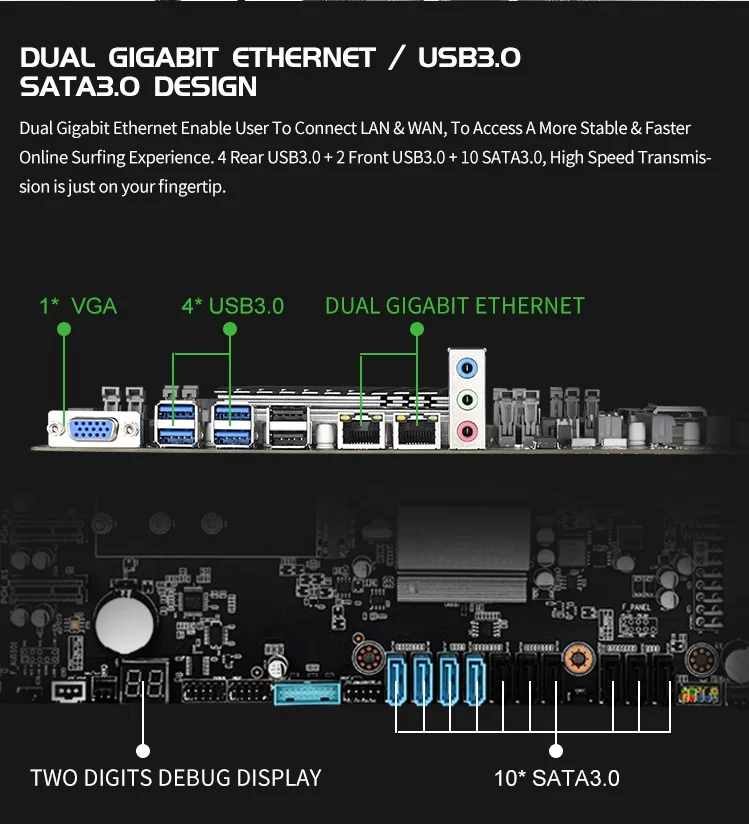 1: цвет нижней пластины слота может отличаться от партии к партии, но это не повлияет на использование продукта. Продукт постоянно оптимизирован и обновлен.2: Пожалуйста, учитывайте разницу в 1-3 мм из-за ручного измерения.3: из-за различных дисплеев и другого светильник, изображение может не показать фактический цвет товара. Спасибо за понимание.4: Эта планформа нуждается в мощном источнике питания. Пожалуйста, убедитесь, что ваш источник питания может быть достаточно для поддержки этой формы. (Не менее 500 Вт брендовый источник питания)5: аккумулятор на материнской плате будет удален перед отправкой, так как батарея запрещена на CN post и на заказ
