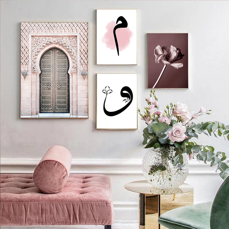 Исламские настенный художественный холст плакат с розовыми цветами старые ворота принт в мусульманском стиле Nordic декоративная картина пейзаж картины Современный мечети Декор
