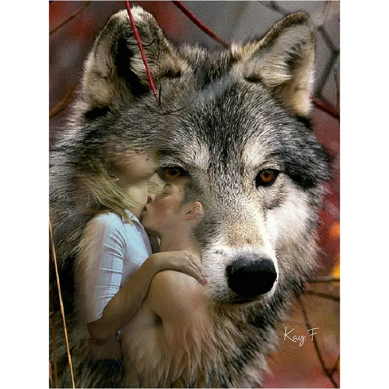Полноразмерная Алмазная картина с изображением волка и круга, 5d Вы...