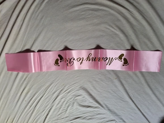 Пояс кушак: Розовая Атласная Лента премиум качества с принтом золотой фольгой. Один размер подходит всем. На 32 дюйма Длина 4 дюйма Ширина пояс идеальной длины и подойдет большинству мам.