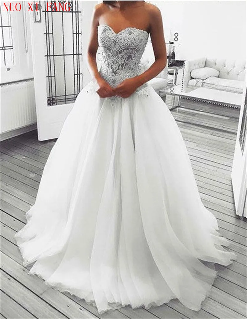 Кружевное свадебное платье, белое, без бретелек, с аппликацией
