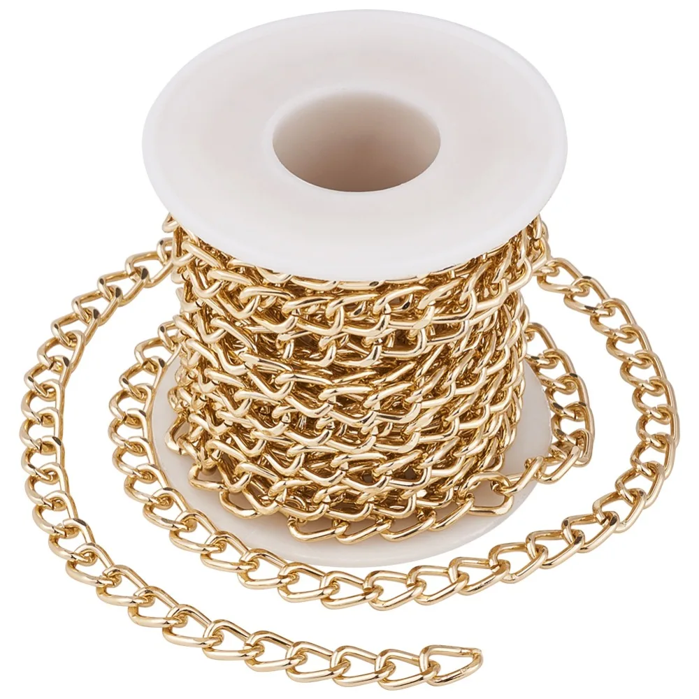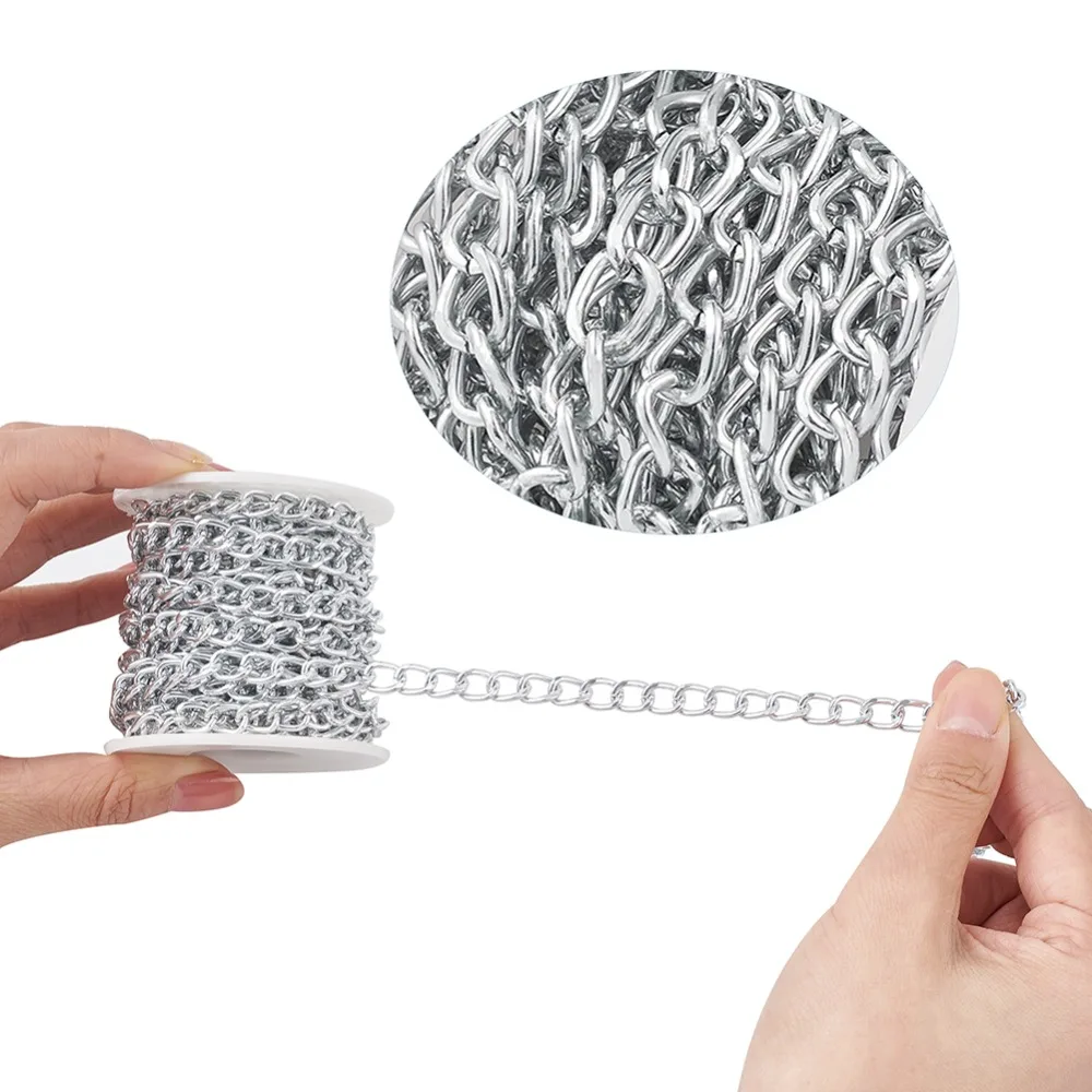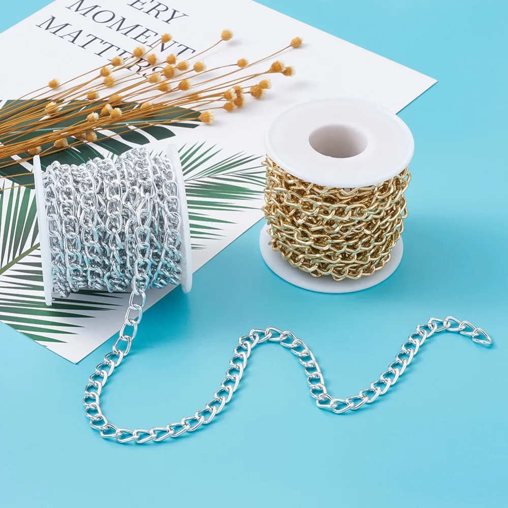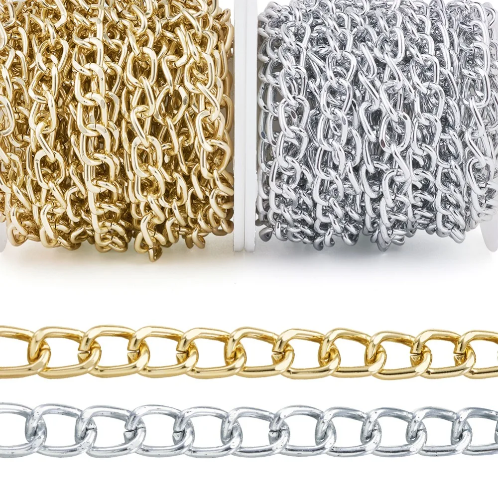 Алюминиевые плетеные панцирные цепи, серебристо-золотистые, для изготовления несварных цепей ожерелья, браслеты, ювелирные изделия, 5 мрулон