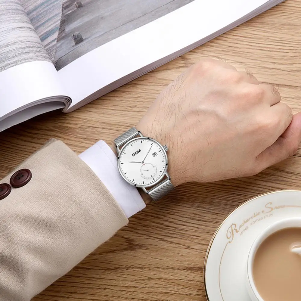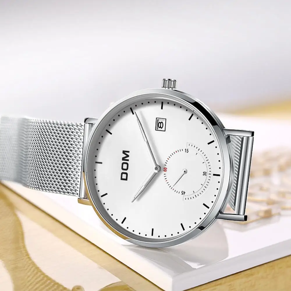 Мужские кварцевые часы DOM, повседневные, ультратонкие, со стальным...