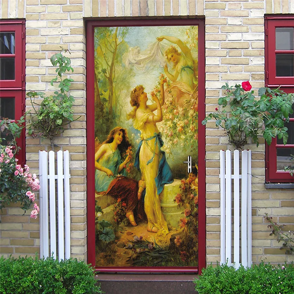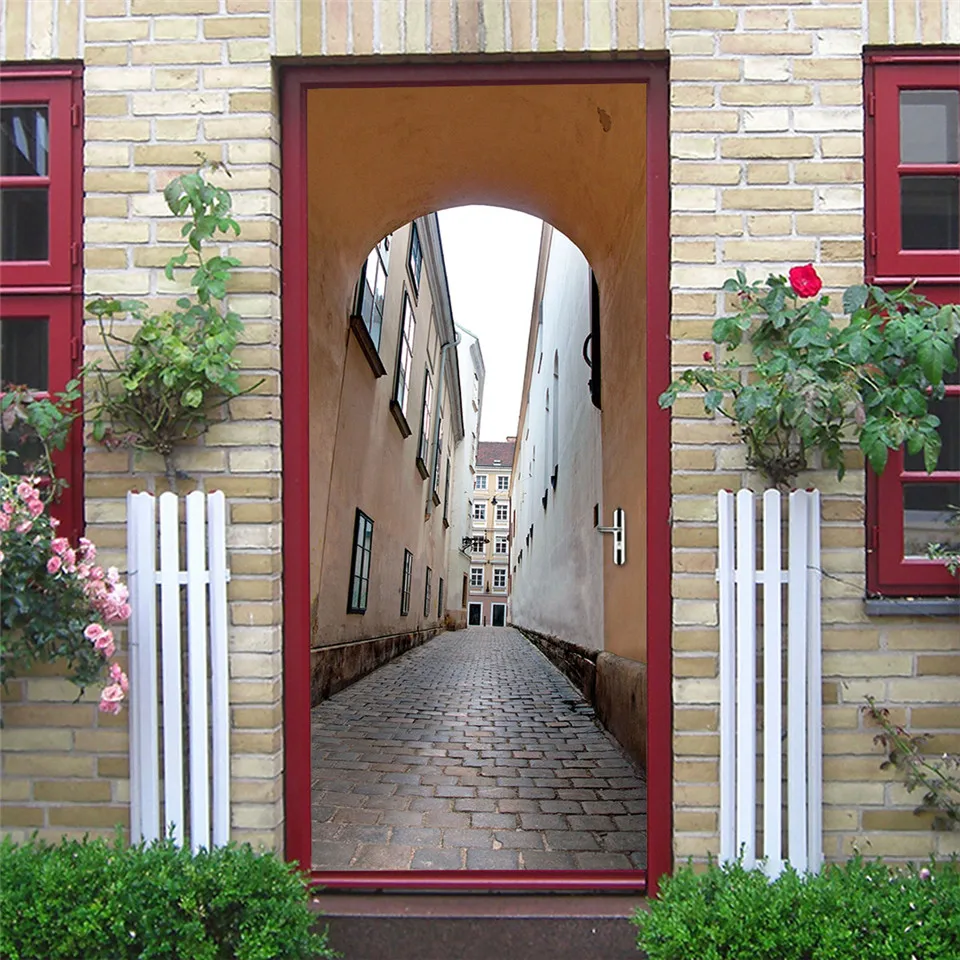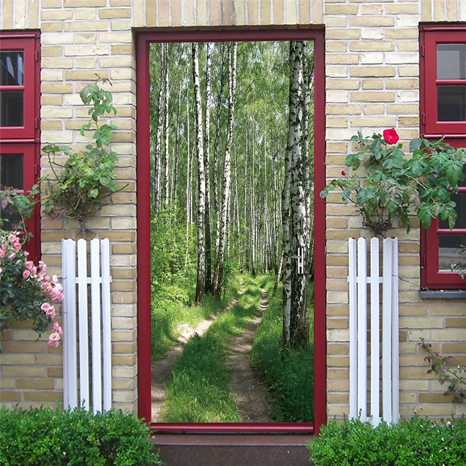 Настенные самоклеящиеся водонепроницаемые обои с цветами и дверью, домашний дизайн, плакат из ПВХ сделай сам, украшение комнаты, настенная наклейка, adesivi porta